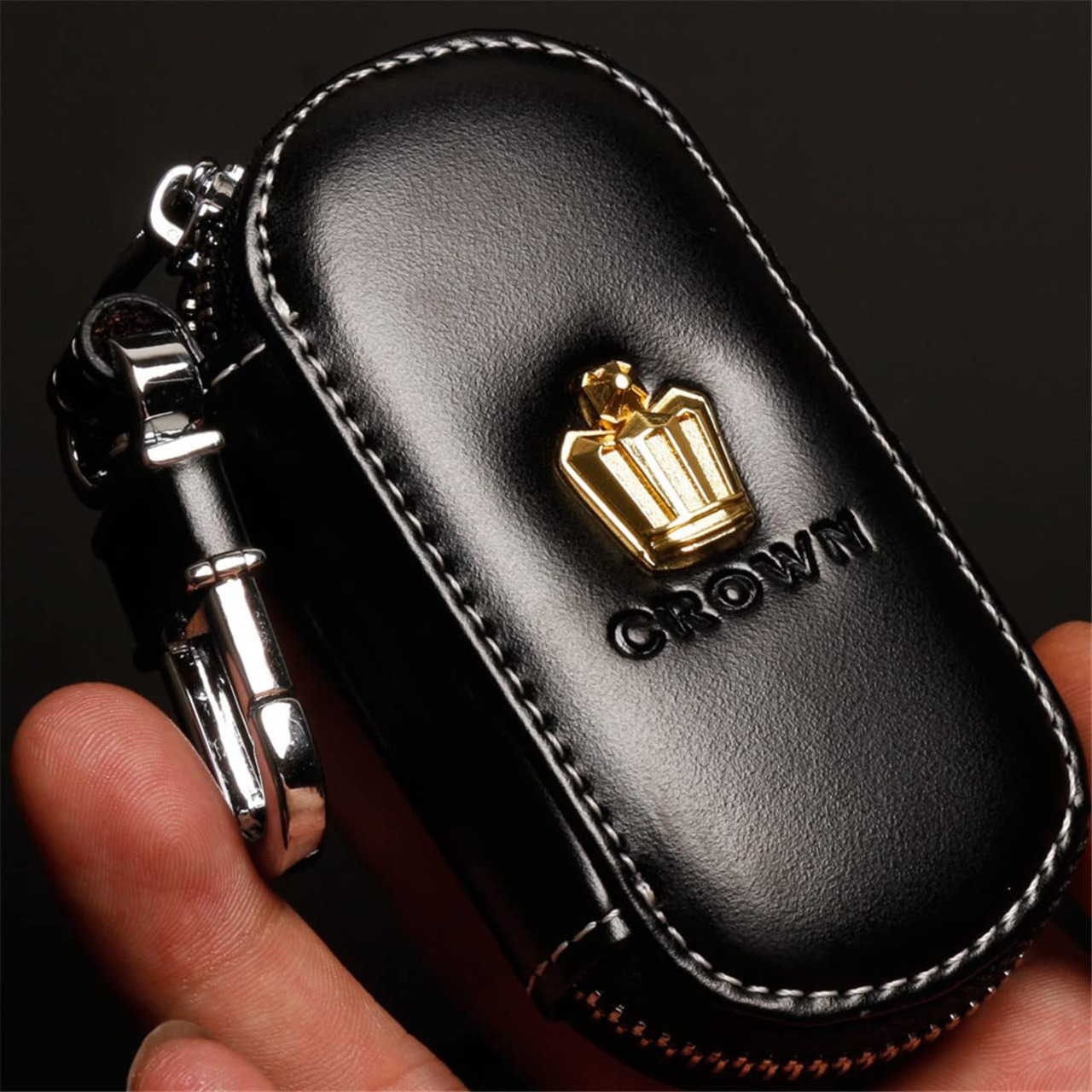 クラウン トヨタ スマートキーケース キーカバー キーホルダー 高級PUレザー製 (黒)