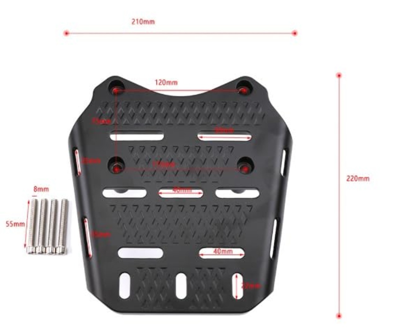 【商品仕様】 ・材質:アルミ 軽合金 アルミダイカスト ・カラー:ブラック ・セット内容:専用 リアキャリア、ステンレス ボルト × 4本 ・ 最大積載量10kg以内