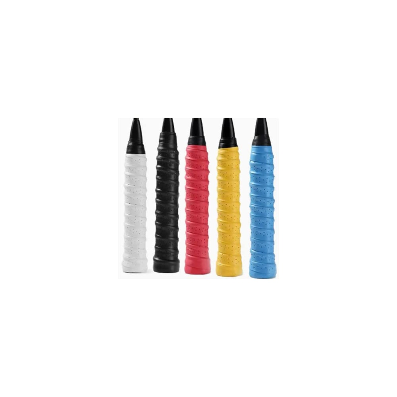 グリップテープ テニス グリップテープ バドミントン テニスラケット ゴルフ グリップテープ 釣り竿 自転車 野球 超吸収タイプグリップ ダンベル用 滑り止め 衝撃吸収 吸汗 多孔型 通気性 5本セット(赤、黄、白、青、黒)