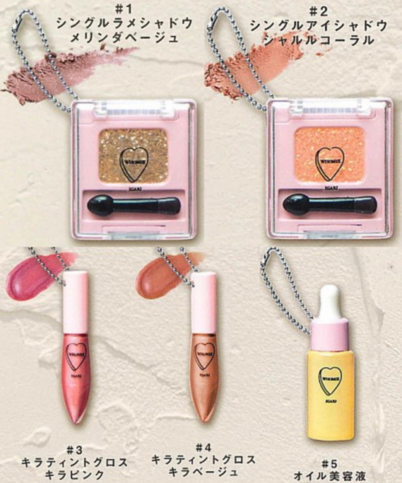 WHOMEE フーミー ミニチュアフィギュアコレクション<br> <br> <1> シングルラメシャドウ メリンダベージュ<br> <2> シングルアイシャドウ シャルルコーラル<br> <3> キラティントグロス キラピンク<br> <4> キラティントグロス キラベージュ<br> <5> オイル美容液<br> <br> メーカー:Peanuts club<br> JAN:4589917663301<br>