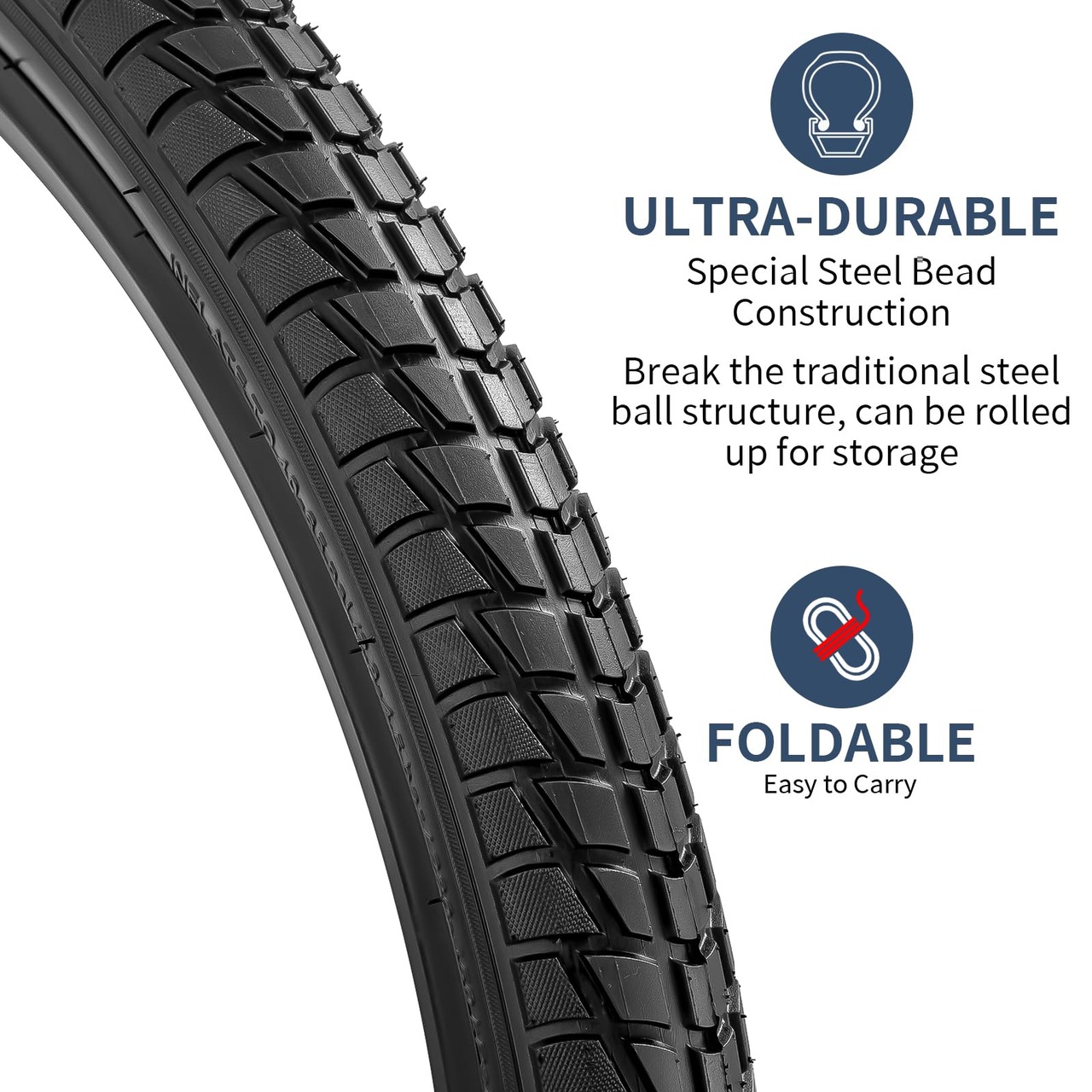 ✅【超耐久性 最新デザイン折りたたみタイヤ】:最新デザイン折りたたみタイヤ,振動の収束が速くなって、地面が滑らかになったような感覚があります。26 1.95 タイヤは良質なゴム材料と高編糸で作られ、グリップ力が強く、耐摩耗性が強い。