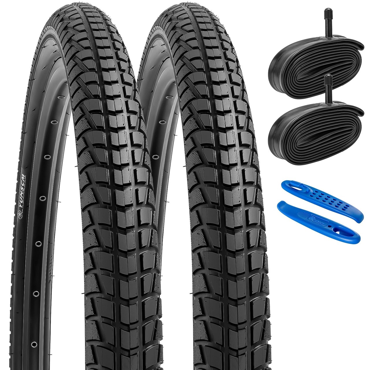 YunSCM 2本セット,26 1.95 タイヤ,26x1.95 53-559 自転車タイヤ+ 自転車チューブ 米式バルブ32mm+タイヤレバ,適用 26インチ 1.95 マウンテンバイク、クロスバイク,Y-1440