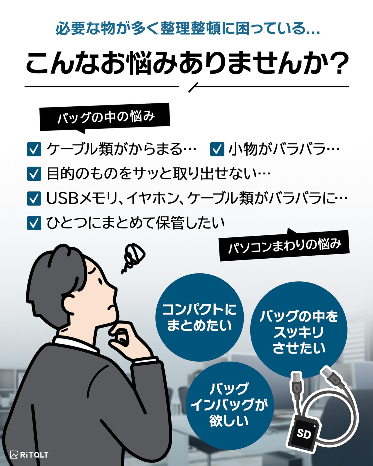 【出張や旅行に便利】からまりやすいケーブル類、失くしやすい小物をひとまとめに!ケーブル類をまとめる結束バンド付き(4本)。ガジェット用、旅行、出張と様々な用途にご活用ください。