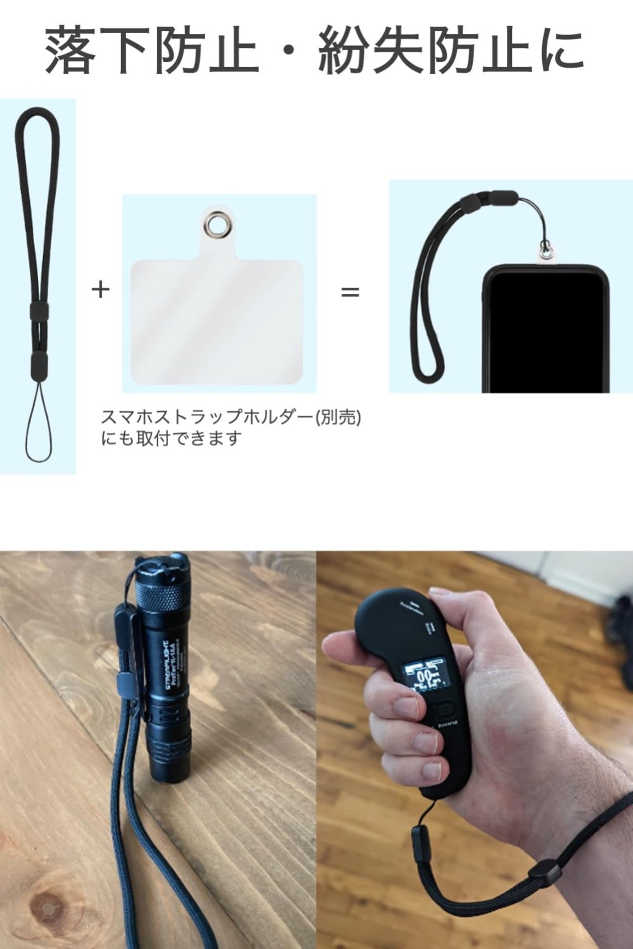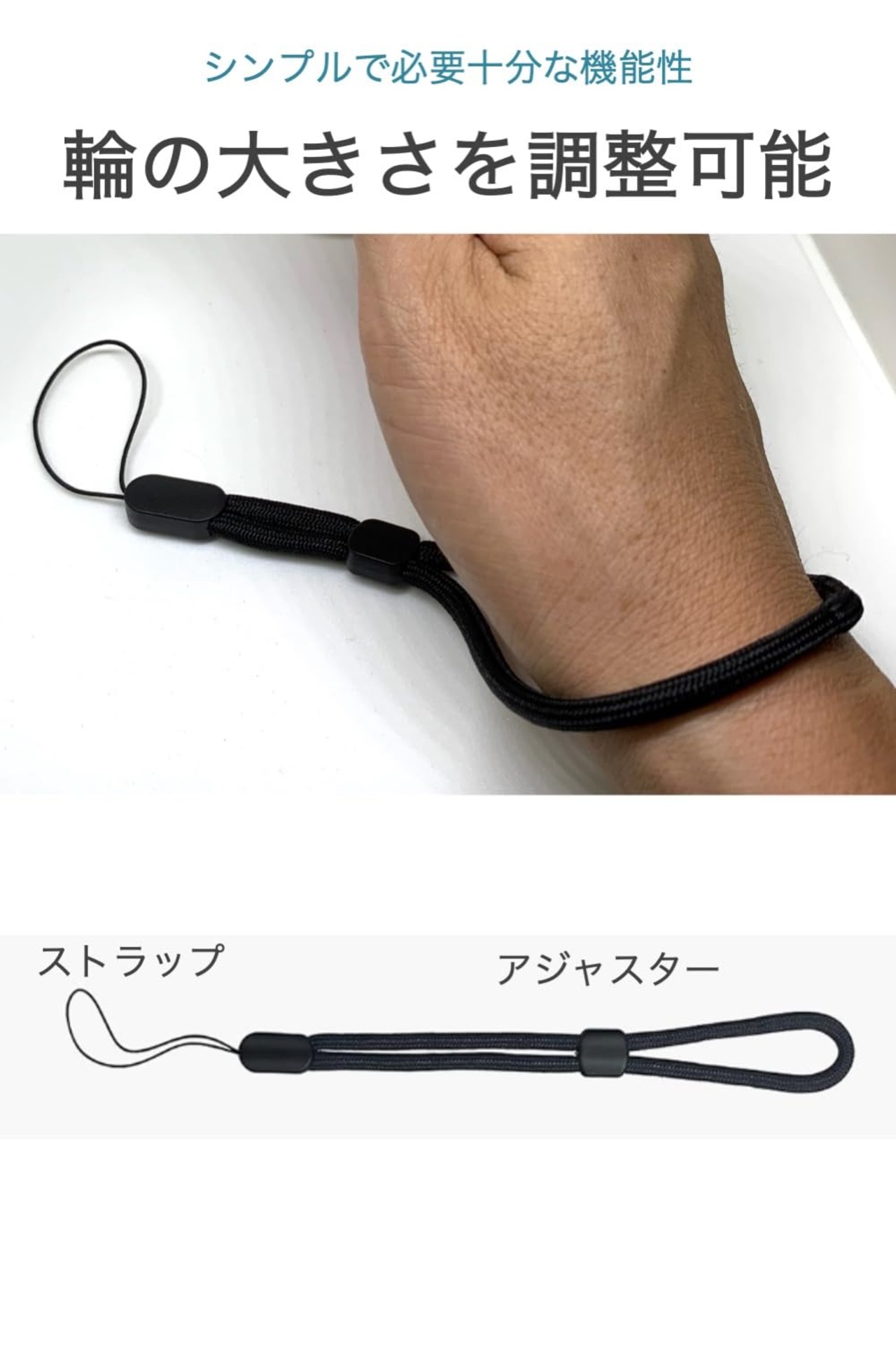 スマホ リストストラップ 黒 3本セット スマホやカメラの落下防止に 取り付け簡単 アジャスター付き