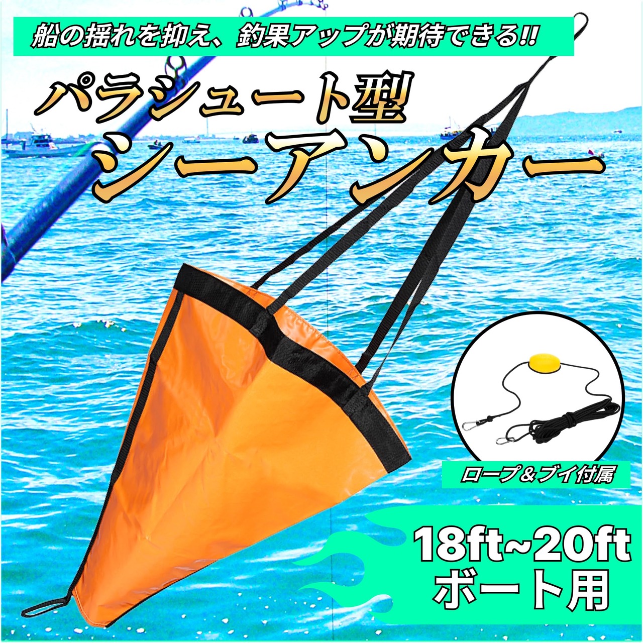 【商品説明】 風の強い中、船体を安定させるのに役立つのがこのパラシュートアンカーです。釣りなどをしているときに、船体を安定させるために大いに役立ちます。本商品は、広くボート、たとえばスタンドアップパドルボート、パワーボート、セイルボート、カヌー、カヤック、インフレータブルボート、そして帆船、ヨットなどにもご利用頂けます。船の大きさに応じた、シーアンカーのサイズをご用意させて頂いております。商品内容は、バラシュートアンカー、フロート(ブイ)、そしてカラビナ付きロープのセットですので、すぐにご利用頂けます。パラシュートアンカーは、PVC(ポリ塩化ビニル)製です。二層構造で二重に出来ているので、丈夫で、耐久性に優れています。また、折り畳み式かつ軽量設計なので、利用時・持ち帰り時の持ち運びにも便利です。