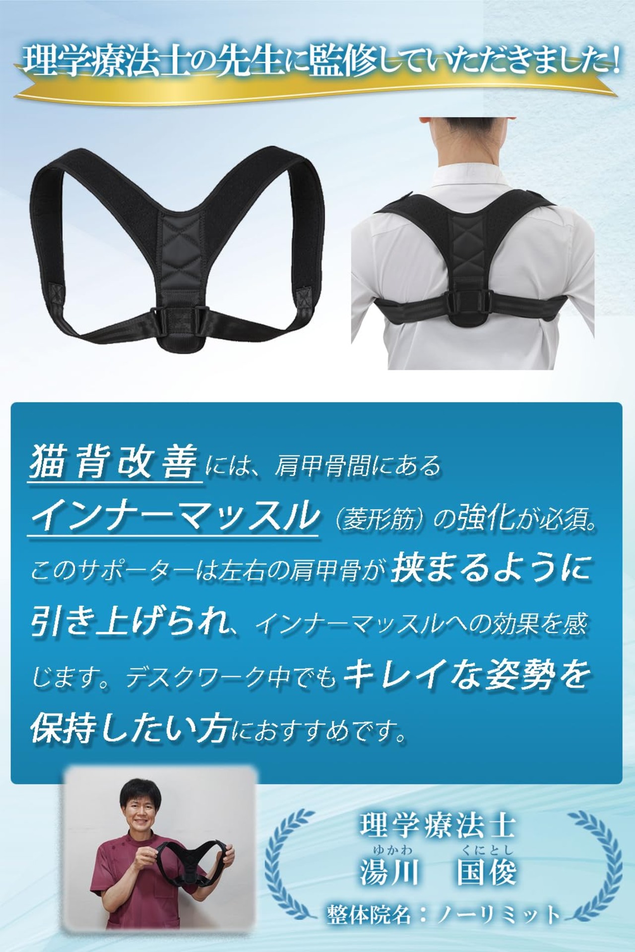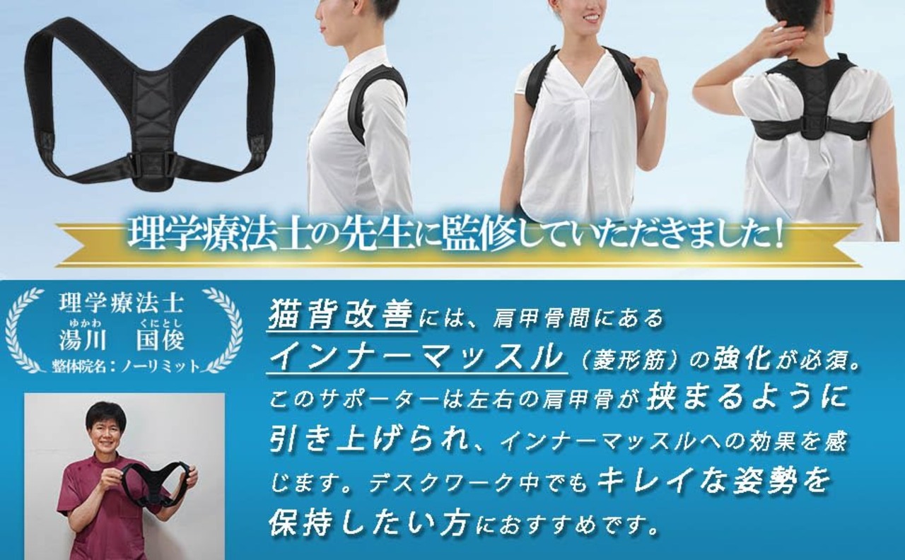 姿勢サポーター 【現役整体師監修】 姿勢 ベルト 猫背 痛くなりにくい素材 男女兼用 【デスクワーク専用】