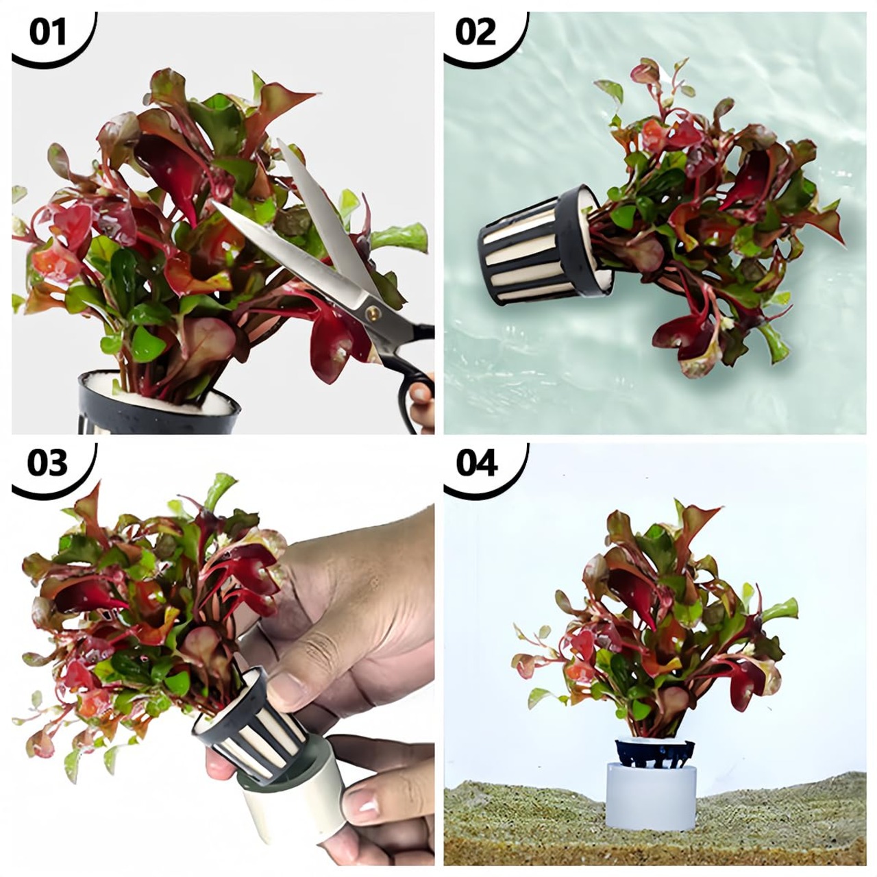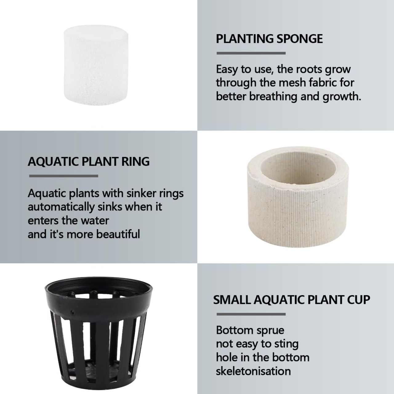 プラスチックトレー: 固定リングの中央に設置できるプラスチックトレイもセットになっています。 水生植物を直立に保ち、曲がったり転倒したりするのを防ぎます。 植物が水槽内の希望の位置に留まり、水槽を美しくします。
