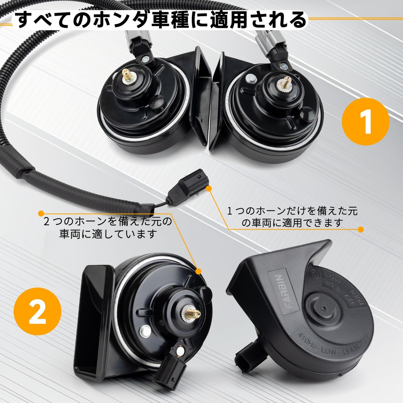 FARBINホンダ車(before 2017)専用 純正サウン 自動車ホーン12V ド ホーン 防水120db 高音/低音 Honda 車用ホーンセット二股分岐ハーネス付き