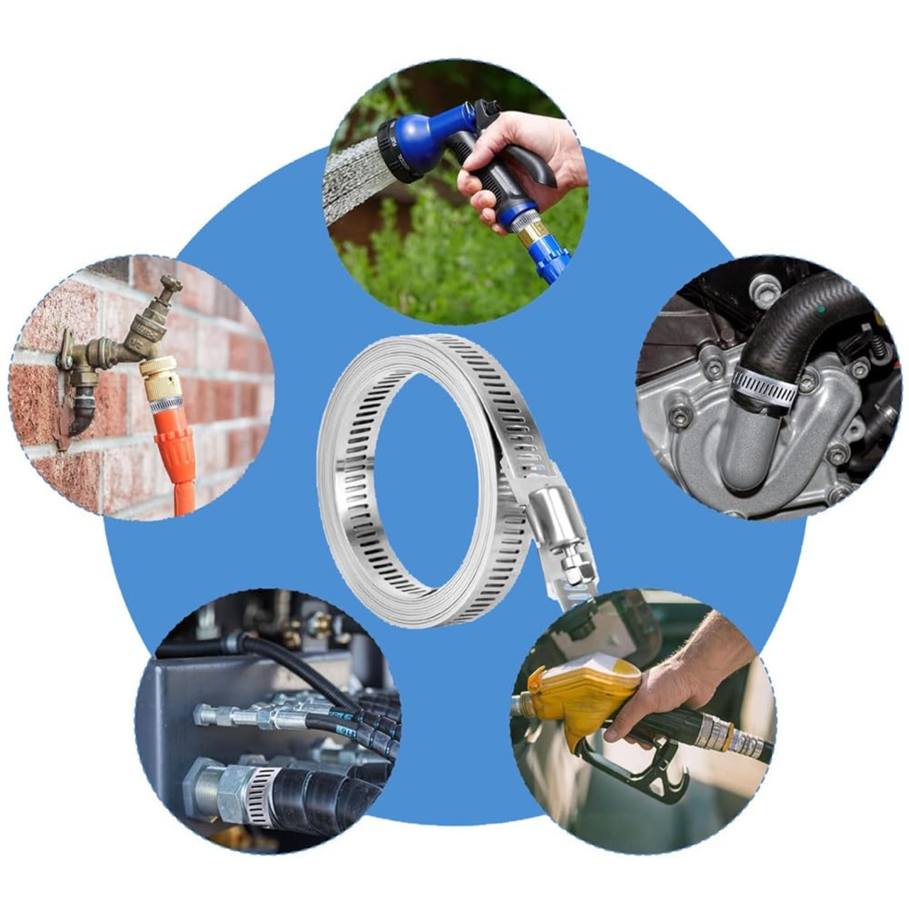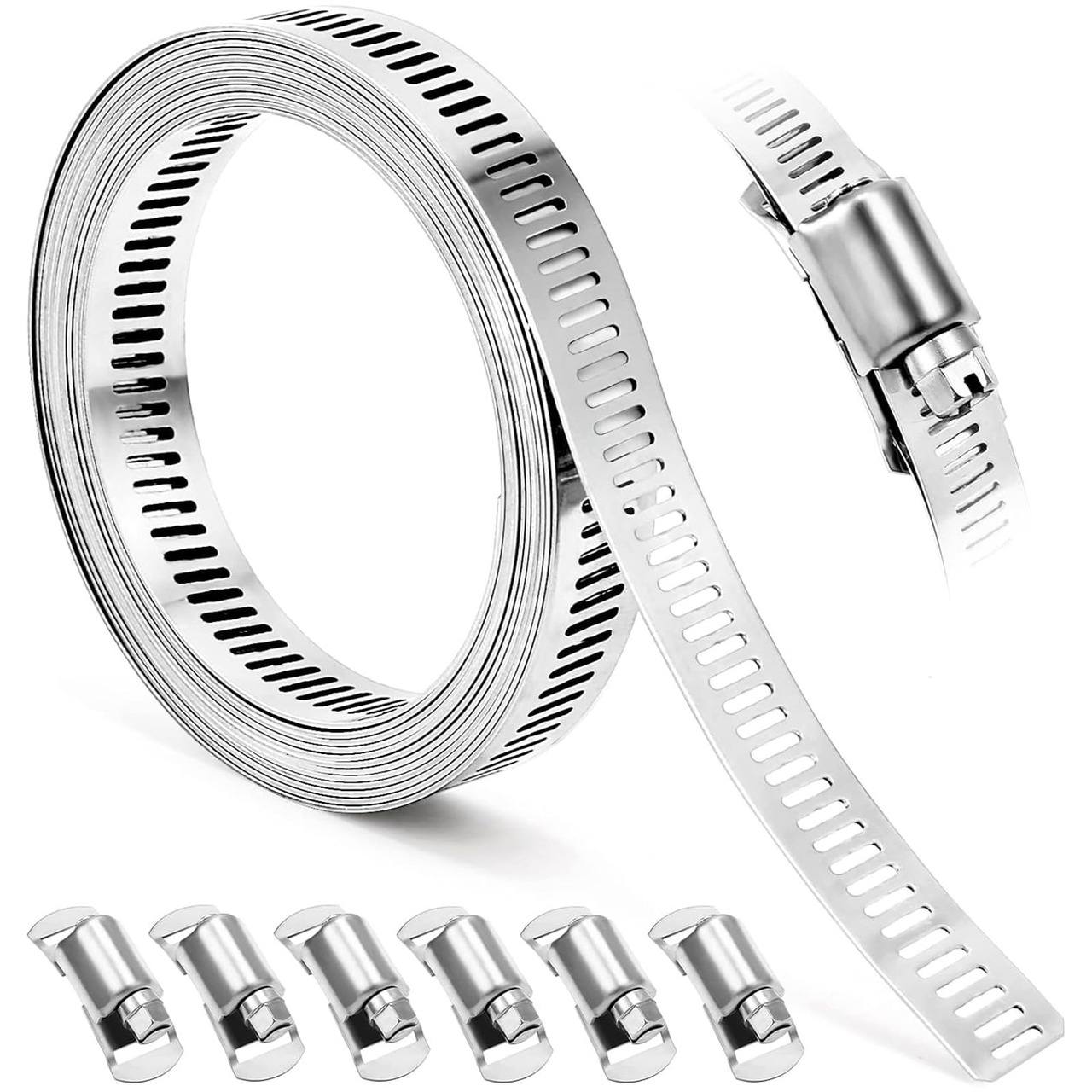 【調整可能なサイズ】ホースクランプキットには、3.0Mメタルストラップとファスナー6個が付属します。長さ調節可能なホースバンドとファスナーのセットです。