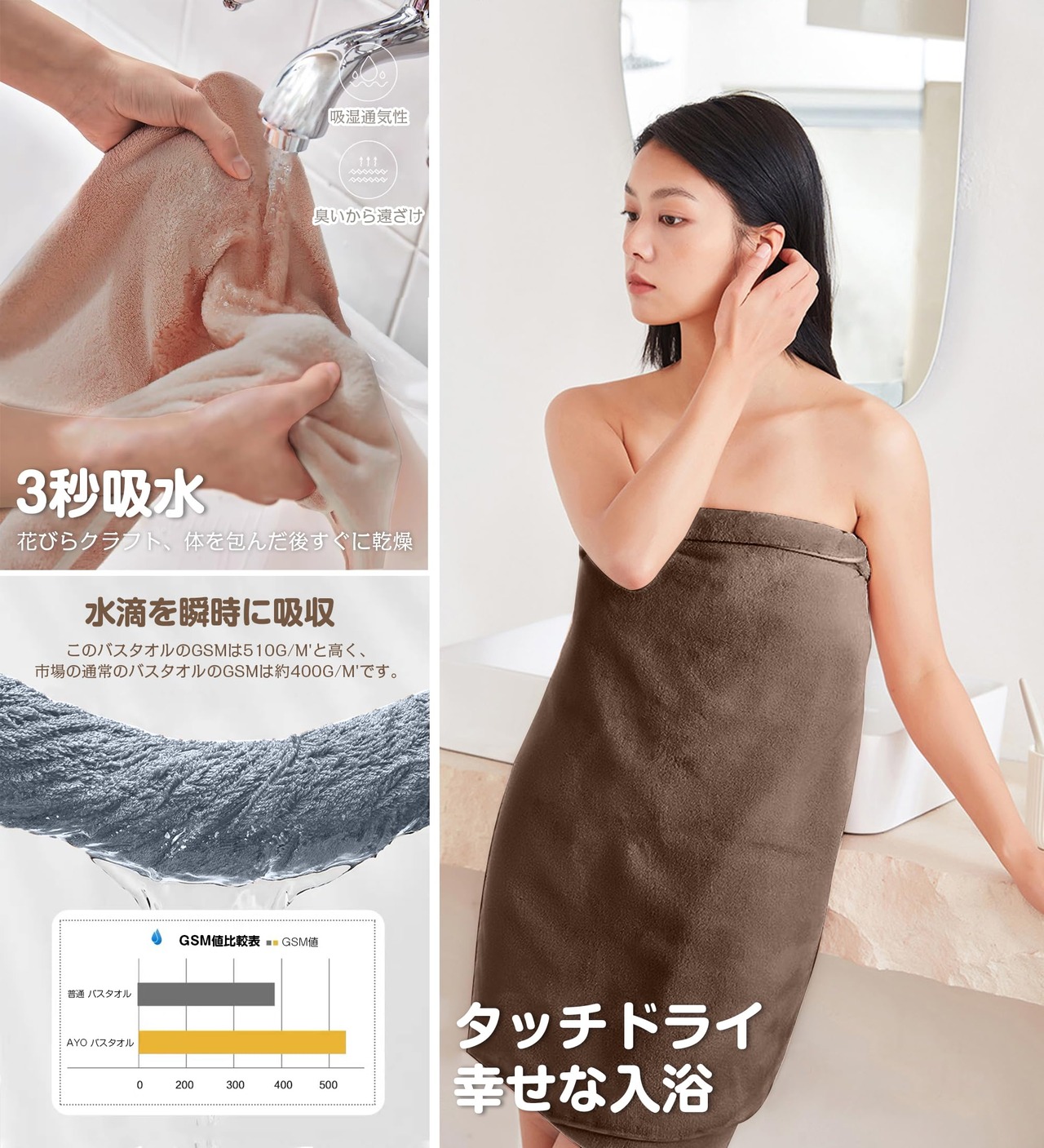 【超実用的、完璧なギフト】マイクロファイバーで丁寧に織られた高品質です。 糸の靭性が強く、寿命は通常のタオルの5倍以上です。 何度洗っても変形しません。 ホームだけでなく、温泉や旅行、プールなども使えます。 お風呂上がり、ジム、エステ、プールなど様々なシーンで活躍します。 自分が使うだけではなく、同僚、上司、お客様へのお礼、敬老の日、結婚祝い、親孝行、友達への贈り物、誕生日、お祭りなどのギフトにも適しています。