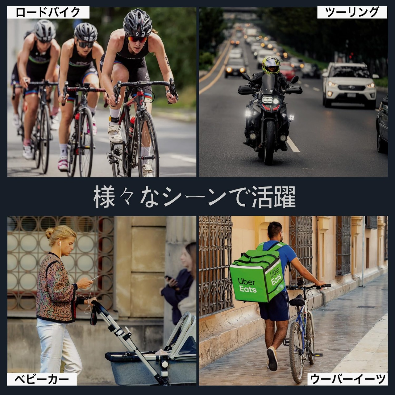 【スマホホルダーとスマホフードがセットに】バイクや自転車に取り付けるスマートスタンドと、日除けのスマホシェードがセットになりました。ツーリング / ロードバイク/ベビーカー/デリバリー / 宅配 / 通勤 / 通学 / ウーバーイーツなど、様々なシーンでお使いいただけます。