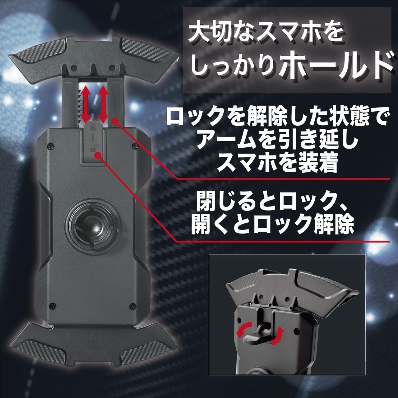 【360度自由回転と全角度微調整】 360°回転し必要に応じてホルダーを水平または垂直にできるので、スマホのグーグルマップでナビを使用しながらライドを楽しめます。また上下方向、左右方向にそれぞれ角度調整が60°程度できるので、スマホをより使いやすくし、メッセージやGPSナビゲーションを確認する際に便利です。