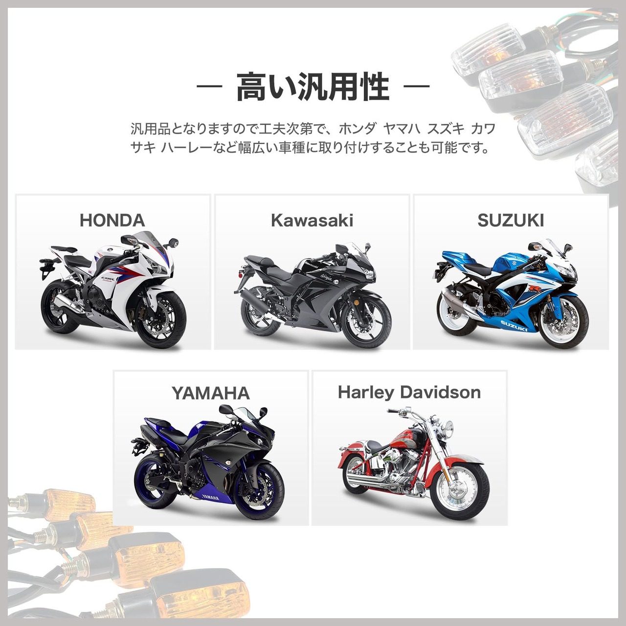 セット内容:シンプルなミニサイズで、スタイルに合わせてクリア レンズ ウインカー 4個 セットとアンバー レンズ ウィンカー 4個 セット2色からお選びいただけます。旧車のカスタム ドレスアップにもご利用いただける、バイク 汎用 ウインカーです。