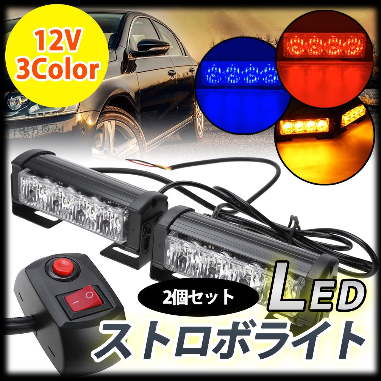 HTharros LED ストロボライト 警告灯 ライトバー パトランプ 6パターン 点灯 12V トラック 自動車 バイク用 レッド 2個セット