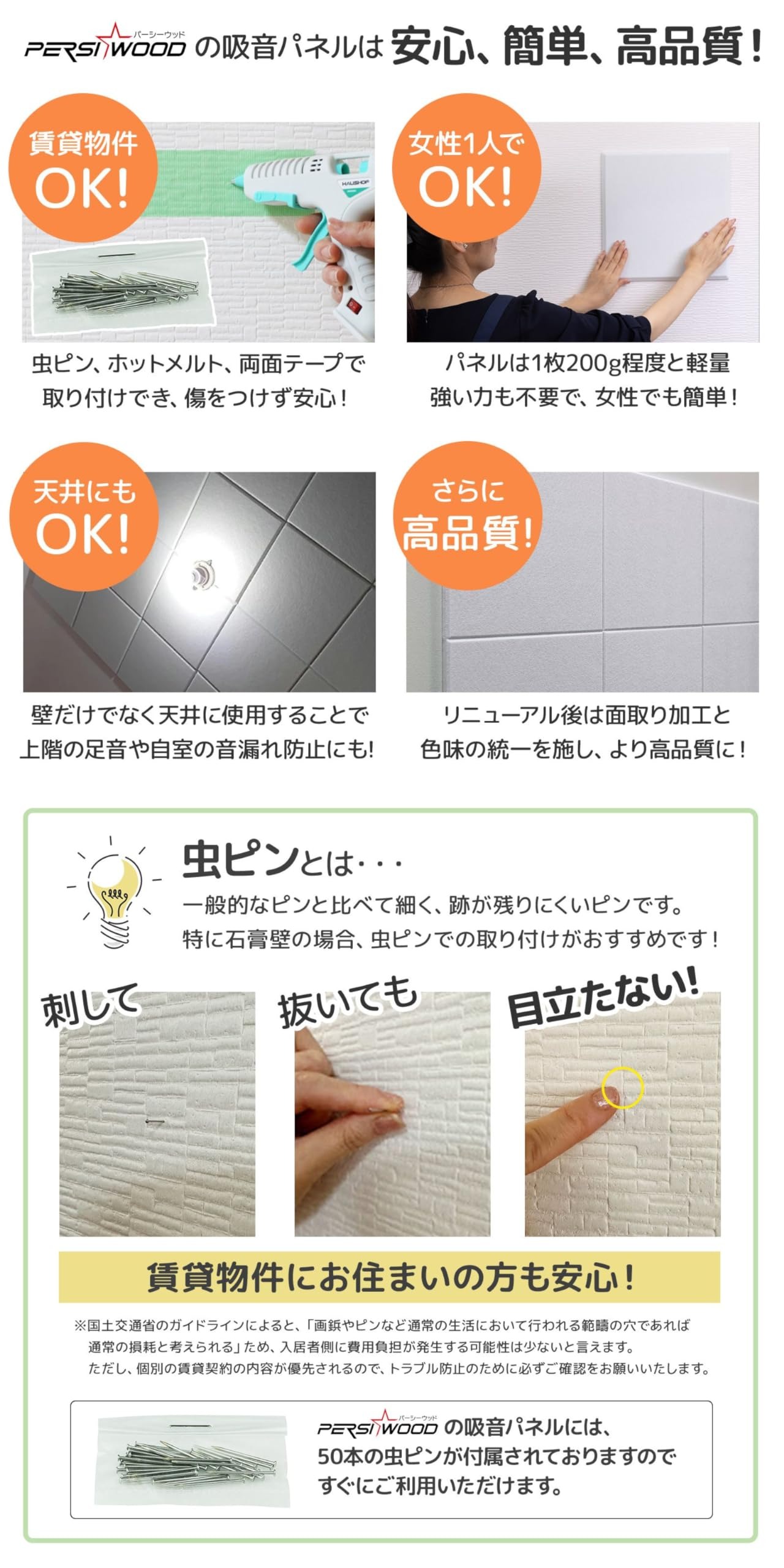 【壁に貼るだけで防音】付属のピンで簡単設置OK!壁にあとが残らず賃貸物件でも安心して使えます