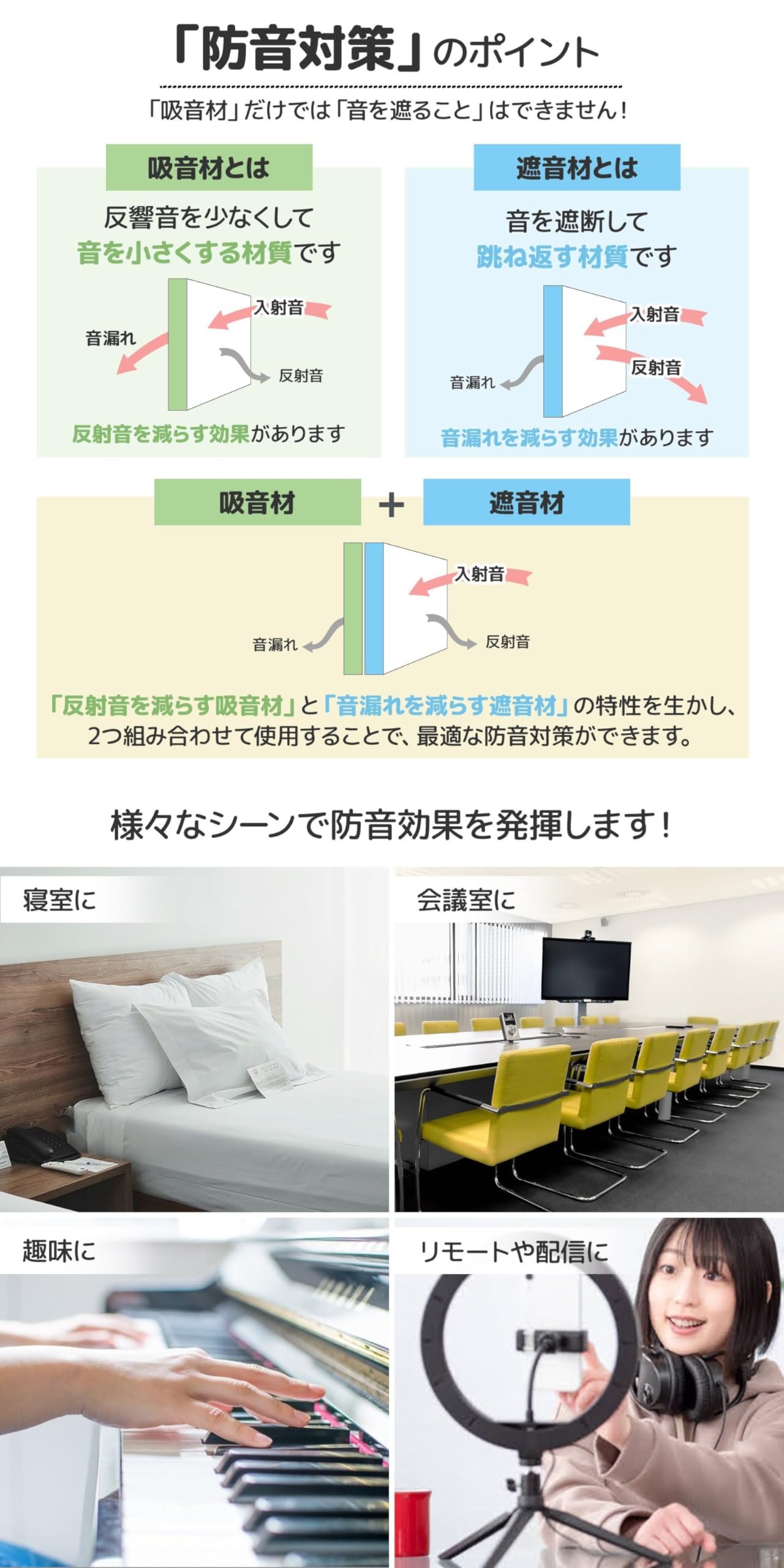 【どこでも簡単設置】床やカーペット下の防音、天井にも貼り付け可能。 遮熱効果もあるので節電対策にもおすすめ。