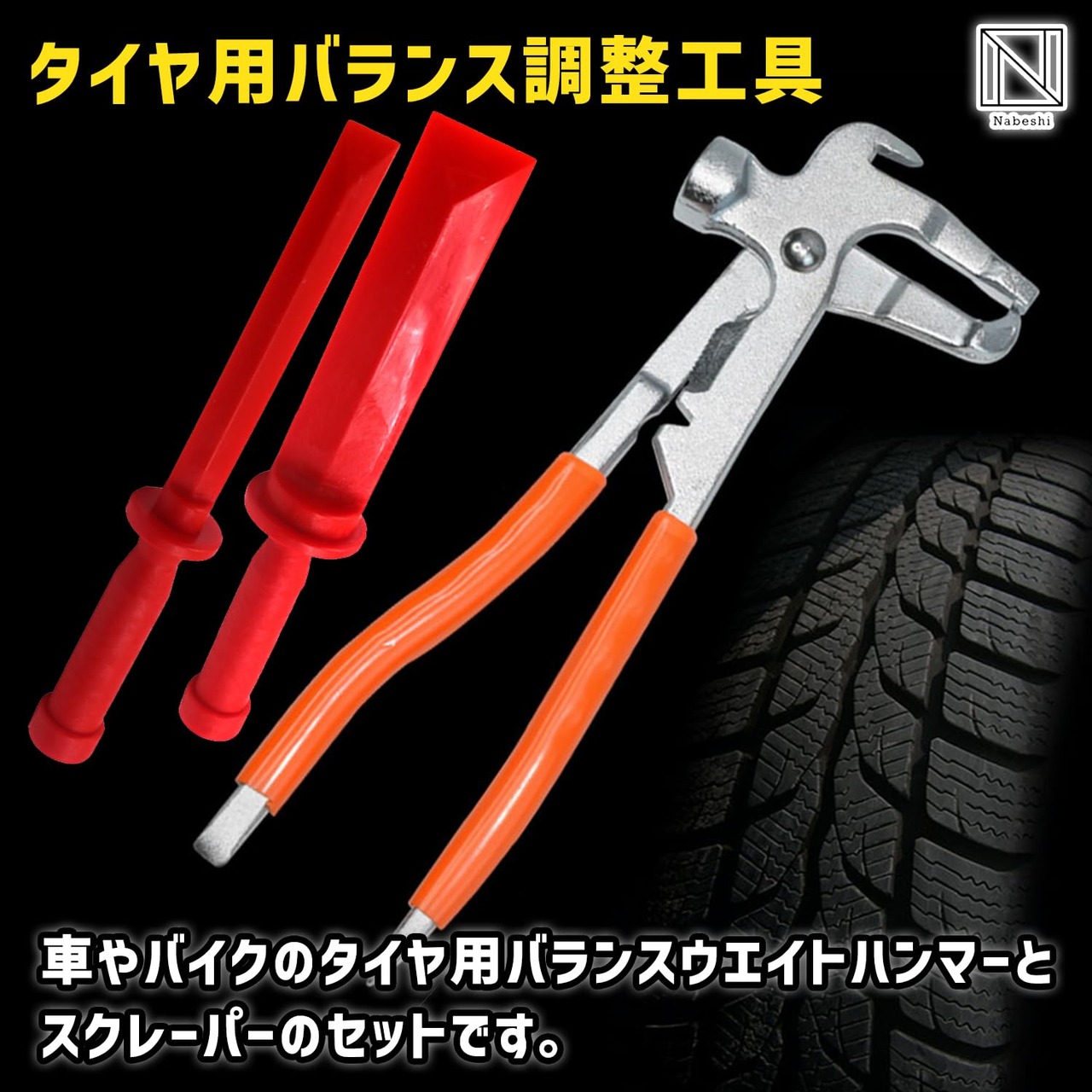 NABESHI 車 自動車 タイヤ バランス 調整 工具 ツール プライヤ プライヤー リムーバー セット 修理 整備 (プライヤー+スクレーパー2個)