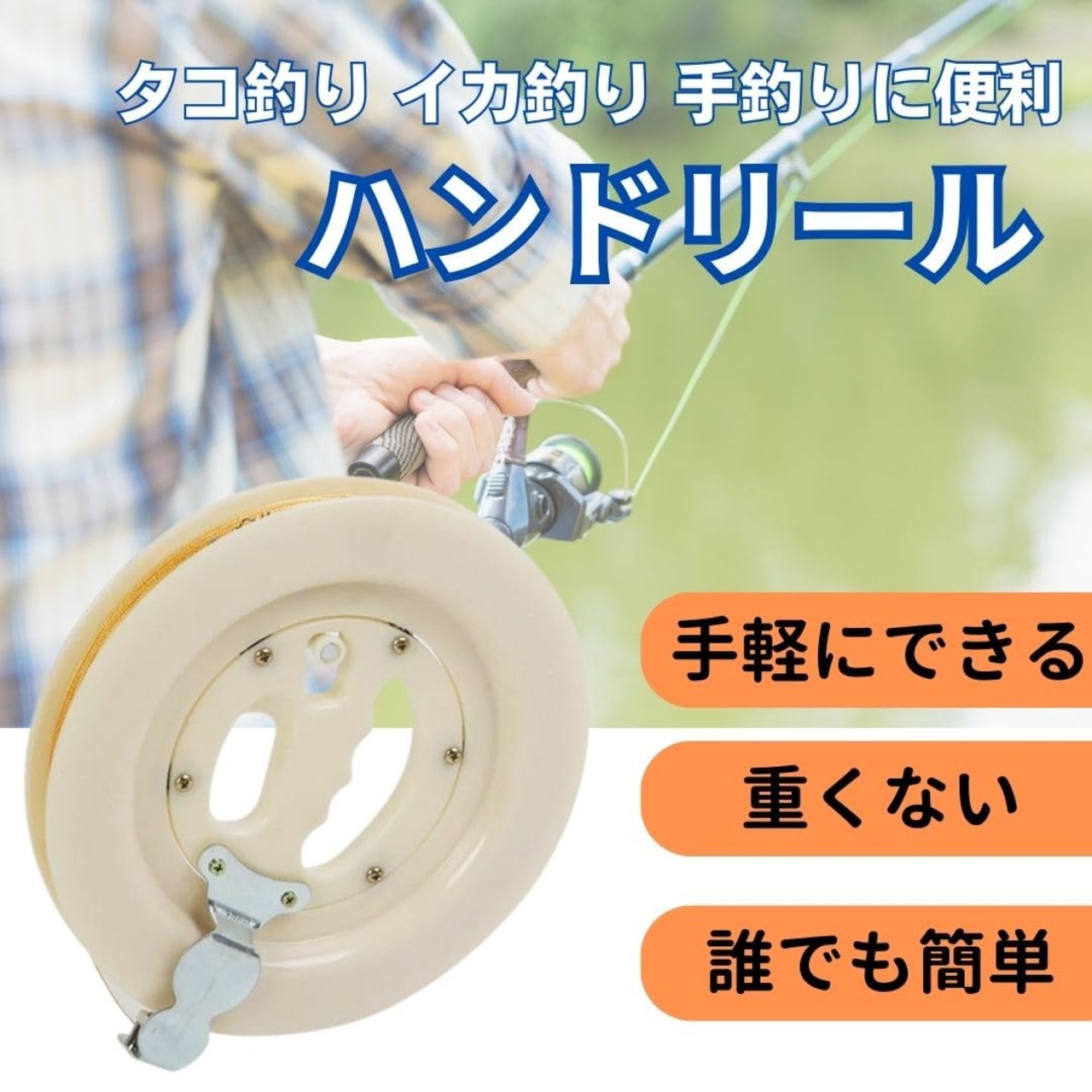 【手軽に釣りを楽しむ】釣り竿を持つには大きいしかさ張り持ち運びにとても大変ですが、コンパクトなハンドリールは手軽に持てて使えます。空き時間にちょっとした釣りを楽しみたい、タコやイカを釣りたい、初心者なのでハンドリールから初めてみたい、子どもにも釣りを教えてあげたいなど。ハンドリールで気軽に釣りを楽しみたい方々にオススメです。<br>【使い方は簡単】ハンドリールの使用方法はハンドルを回すだけのとても簡単な操作です。お子様、女性の方、老若男女どなたでも手軽に操作ができます。持ち手は握りやすいよう設計されているのでしっかり握ることができ長時間の釣りも苦ではありません。<br>【軽くて扱いやすい】ハンドリールの素材は軽くて丈夫なABS樹脂を使用。高耐熱性、耐衝撃性、強度に優れており小さな魚はもちろん大きな魚、タコ、イカを釣ることも可能。釣り竿に比べて魚の引けの力強さを感じることができるのもハンドリールの魅力の1つです。<br>【商品詳細】サイズ:リール直径18cm・約200m巻き取り可能。素材:ABS樹脂<br>【返品について】購入から30日間返品対応させていただきます。その際はお手数ですがAmazonカスタマーサービスまでご連絡ください。
