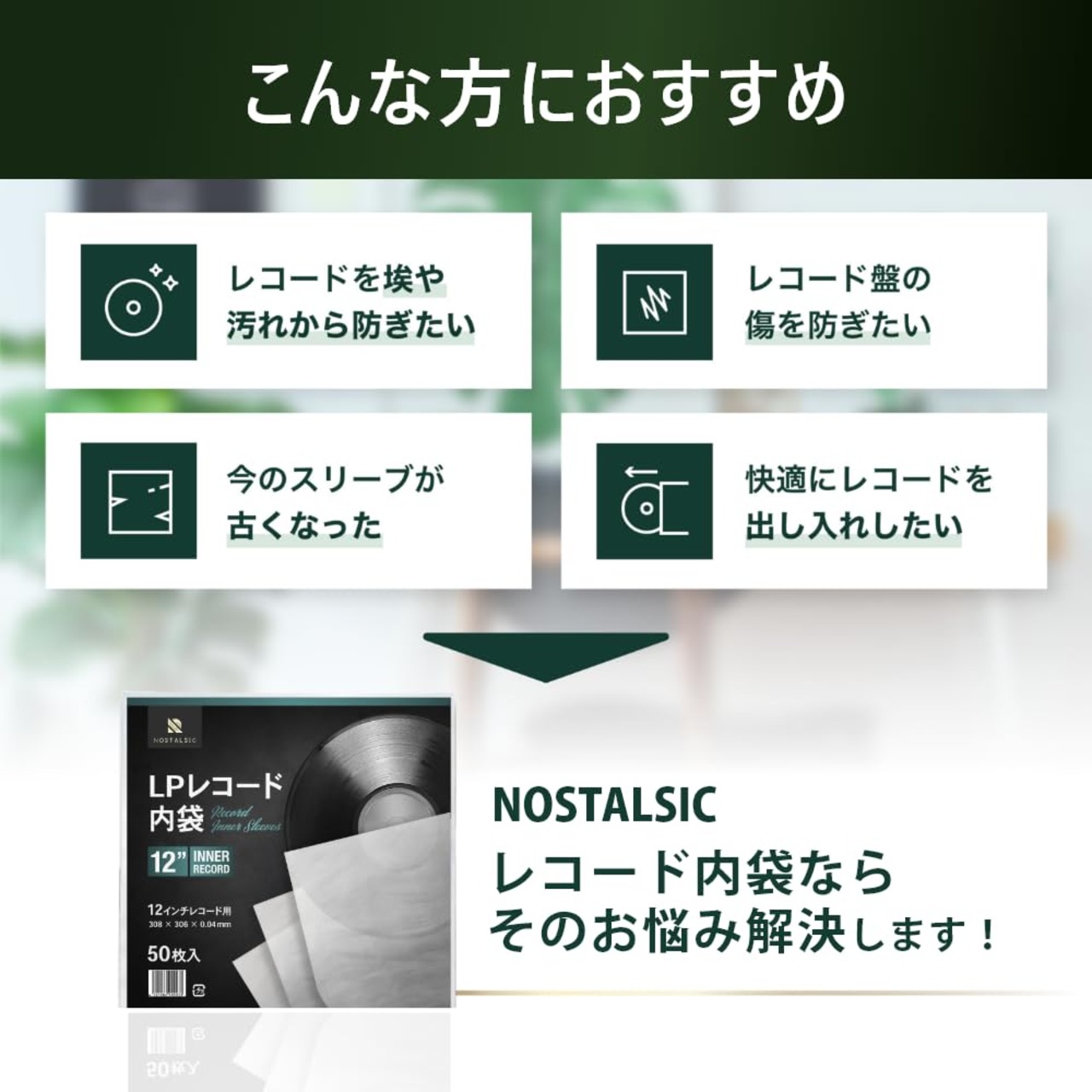【新しいレコード袋で気分もリフレッシュ】NOSTALSICのレコード袋は大切なレコードを徹底的に傷から防ぎます。 傷・ホコリを防ぎ、あなたのレコードを長持ちさせます。
