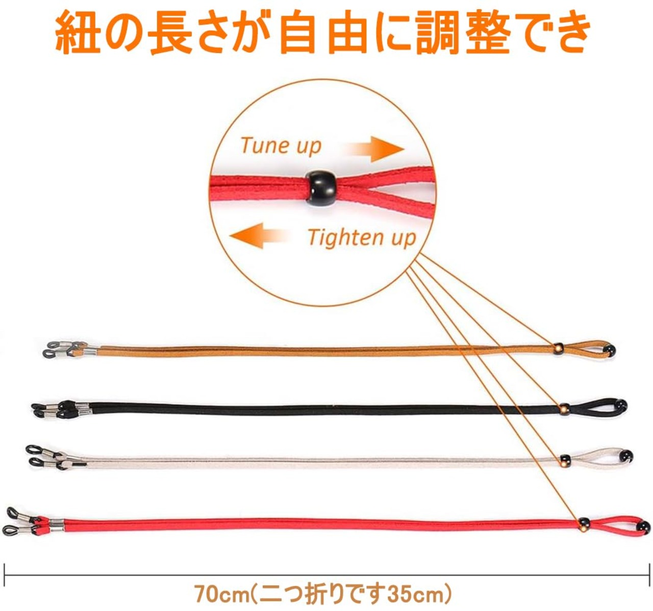 【幅広い場合に活躍】メガネのアクセサリーだけでなく、メガネのずれ落ち防止と置き忘れ防止にも役たつ!登山、スキー、釣り、ランニングなど様々なアウトドアスポーツに適用します。子供・年配者の眼鏡のサポートにも対応できます。とにかく、老若男女を問わずご利用いただけます。