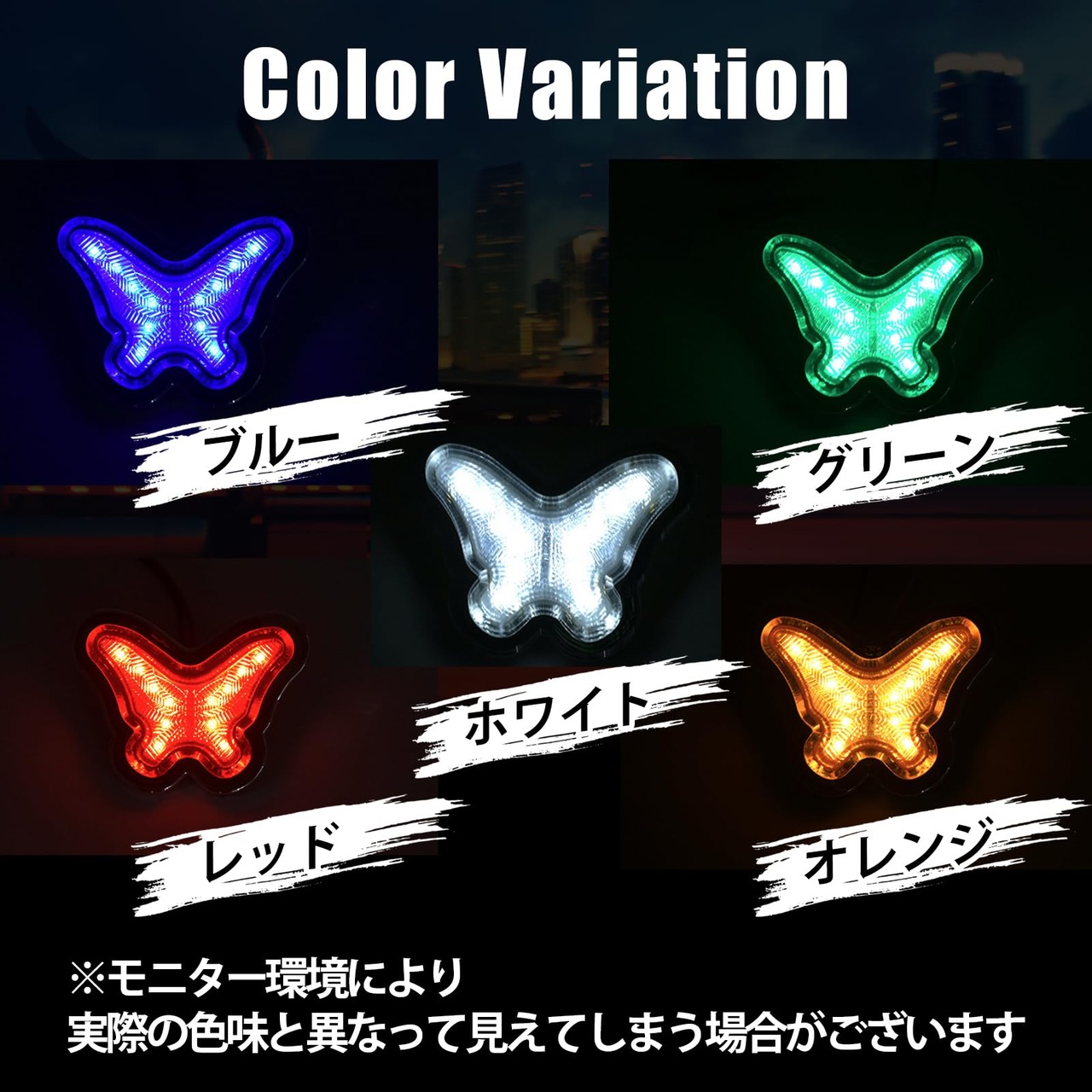 【安全性向上】HTharrosの蝶型、サイドマーカーランプは夜間のドライブをより安全にします。明るいLED光で、あなたのトラックやデコトラが他のドライバーにしっかりと認識されます。事故防止にも繋がるこのライトで、夜道も安心して走行できます。【汎用性】24Vに対応しており、さまざまなトラックやカスタム車に簡単に取り付け可能。プラスチック製で耐久性に優れ、長期間の使用にも耐える設計です。2個セットで、車内も含め、フロント、サイド、リア等の必要な箇所に適切に配置できます。 【スタイリッシュ】レトロなデザインのサイドマーカーで、あなたの愛車を一際目立たせる電飾アクセサリーとなります。車体のカスタムにこだわる方には、このアイテムがスタイルを一層引き立てるアクセントになるでしょう。【カラー】レッド、オレンジ、ブルー、グリーン、ホワイト各2個セットよりお好みによりお選びください。 【多用途性】トラックだけでなく、個人の車にも適用可能なこのライトは、バックライトやデコレーション、イルミネーションとしても使用できます。※防水構造ではございません、取付け前にシール等の防水処理を推奨いたします。【サイズ】最大幅約9cm、高さ約7cm、厚み約2.5cm、取付けネジピッチ約3cmとなります。 【注意事項】取り扱い説明書はありません。適合確認、取付のサポートは行っておりません。画像及び寸法をご参考にご判断ください。※海外生産品の為、製造上のバリ、若干の色ムラ、輸送時の小傷等が発生する場合がございます。またモニター環境により実際の色と違って見える場合がございます事、予めご了承の上ご購入下さいませ。