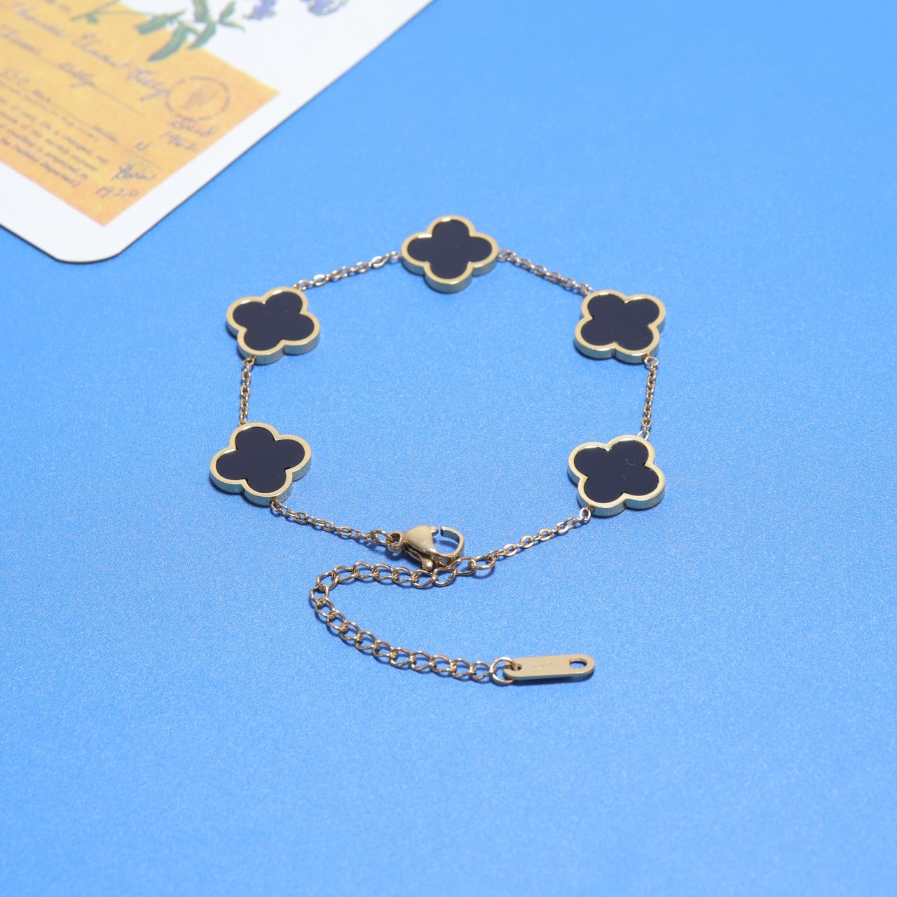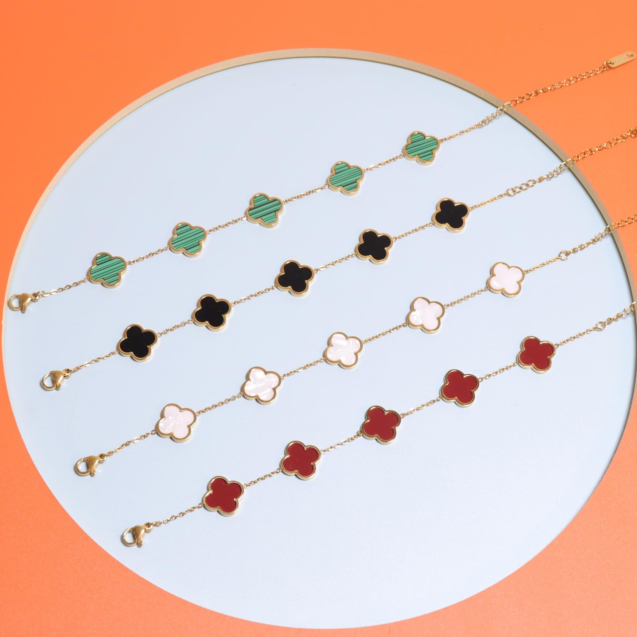 ユニークな四つ葉のクローバーブレスレット、女性用、ホワイト、ブラック、グリーン、レッド、ラッキーリンククローバーブレスレット、18Kゴールドメッキジュエリー、クリスマス、バレンタインデーのギフトに。, 6.49in, ステンレス鋼, 宝石なし