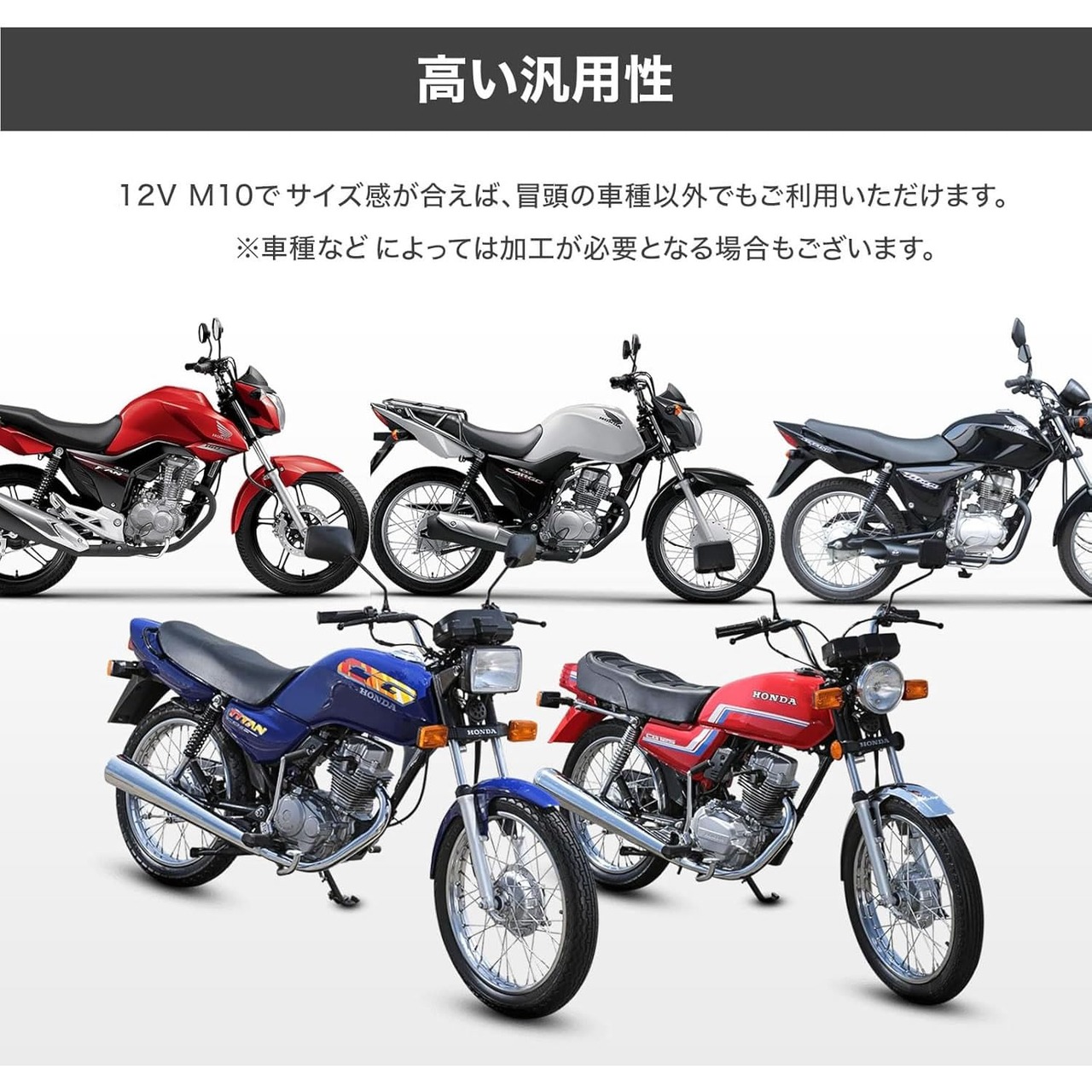 高い汎用性:適用車(CT110 cg125 XL200R ハンターカブとの互換性あり)の他、12V・M10・ピッチ1.25でサイズが合えば、冒頭の車種以外でもご利用いただけます。※車種などによっては加工が必要となる場合もございます。