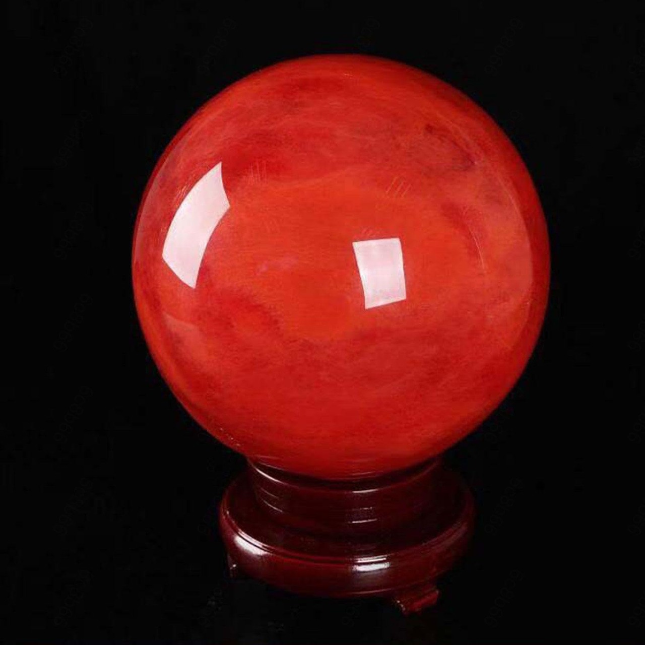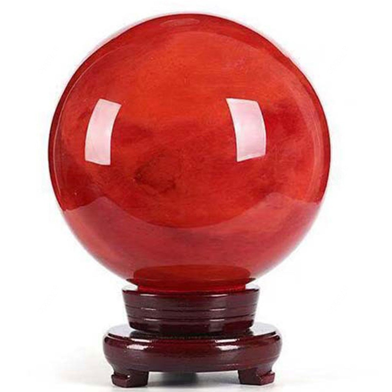 レッドクリスタル瞑想球ボール 木製ディスプレイスタンド付き ナチュラルデコレーションジェムストーンスフィア チャクラヒーリングクリスタルスフィアボール,80mm