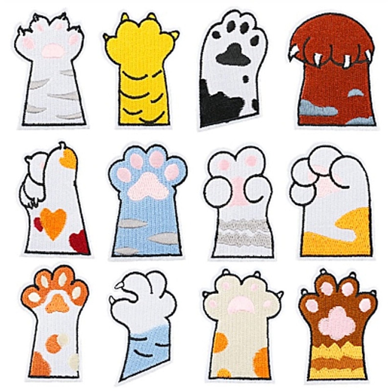 SAEYZ 動物 犬 ネコ アイロン ワッペン 接着 かわいい 動物の手 刺繍 アップリケ 保育園 かばん 服 小物 (動物の手 12枚)