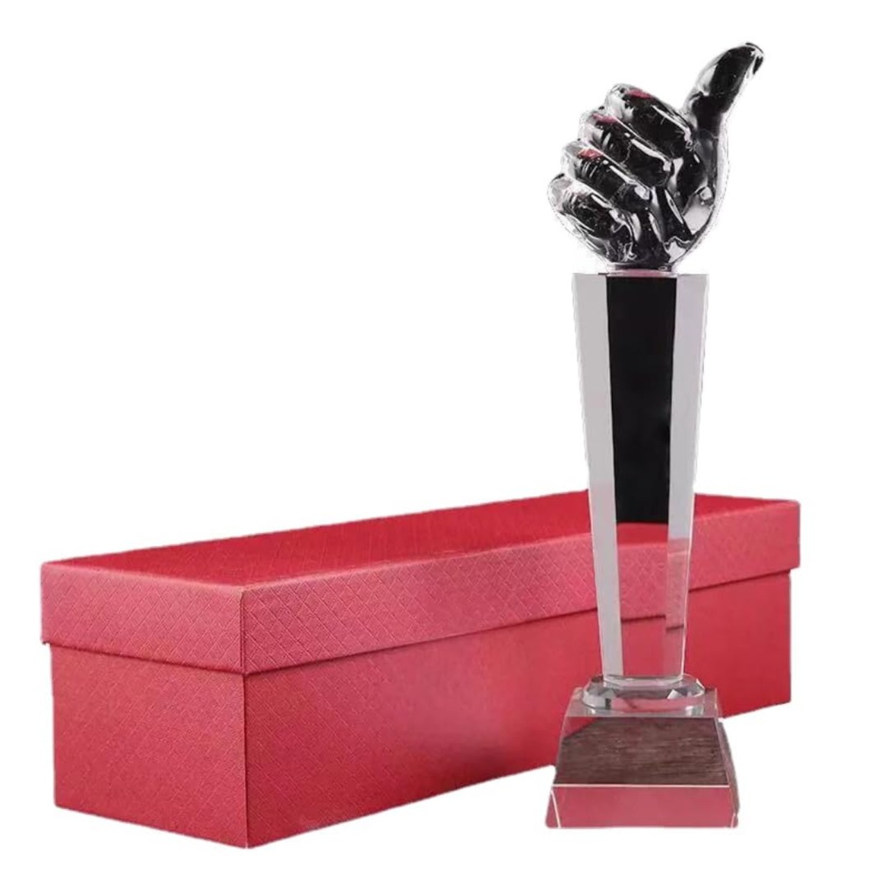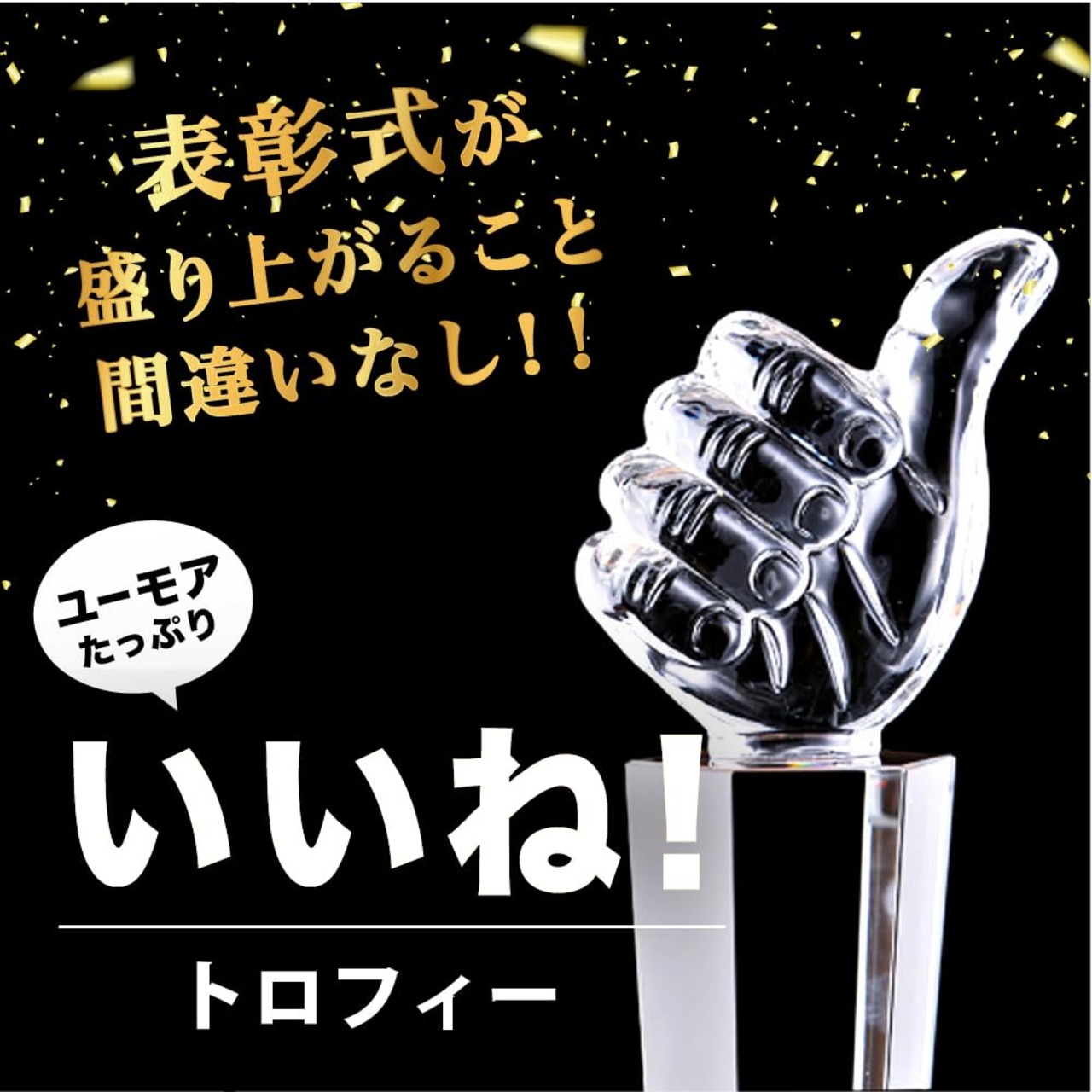 【見た目がゴージャス】人工クリスタルガラス素材が光り輝いているので見た目がゴージャスでインパクトがあります。大会やイベントなどでメダルや賞状と一緒に優勝者に渡してもとても喜ばれます。いいねマークの面白いトロフィーは老若男女問わずその場を楽しく盛り上げてくれます。