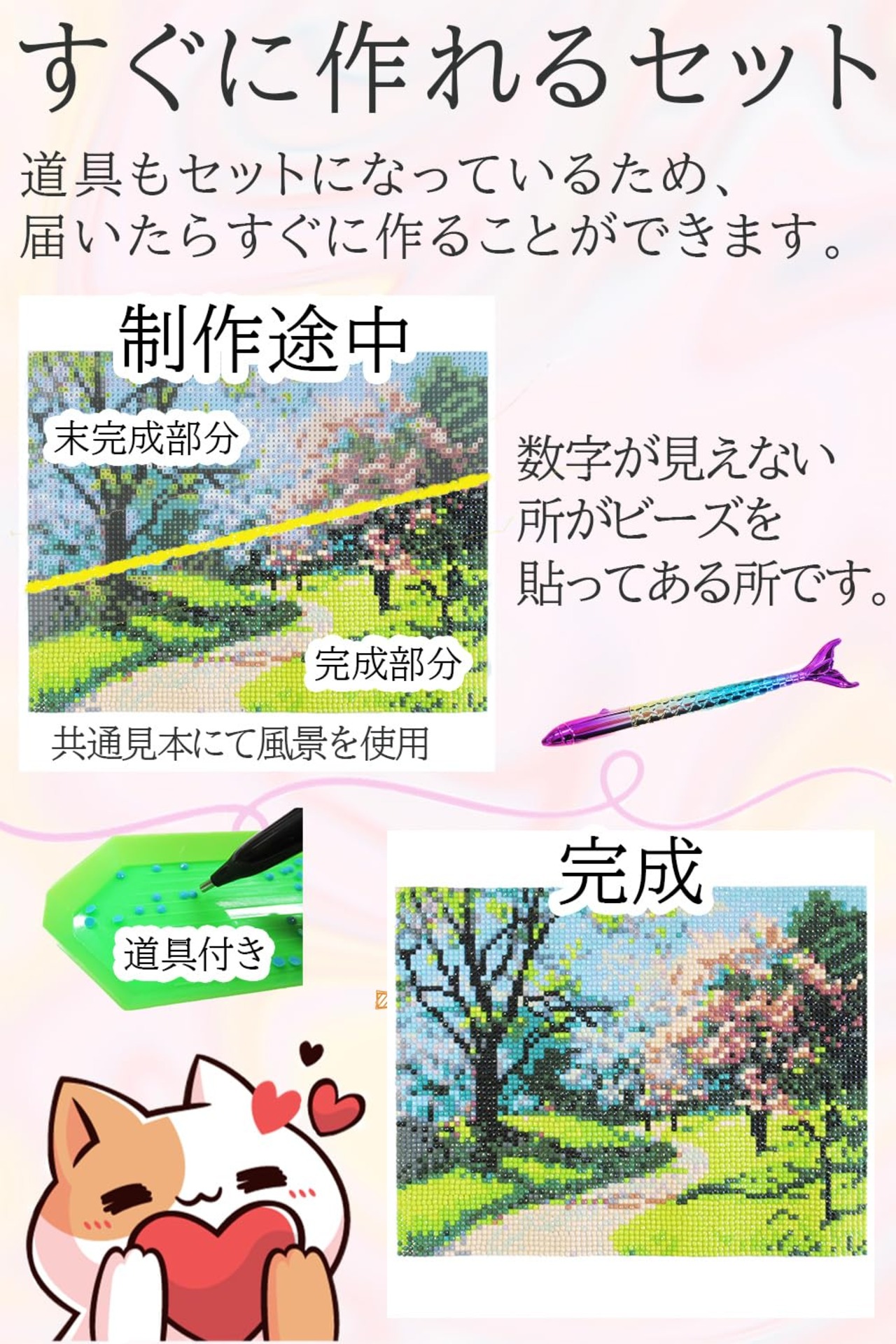 【道具+絵セット】購入してすぐに作れるセットになります。最低限の道具と、絵が付いております。