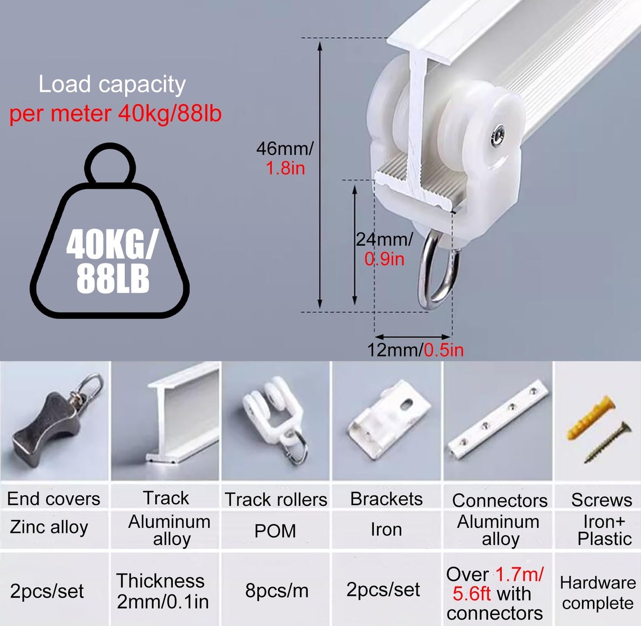 【パッケージ内容】: カーテンレールには、トラック、ナノサイレントローラー、シーリングポート、必要な金具など、取り付けに必要なものがすべて含まれています。 コネクタを含む 1.7 メートル/5.6 フィートを超える場合は、分割して送信する必要があります。