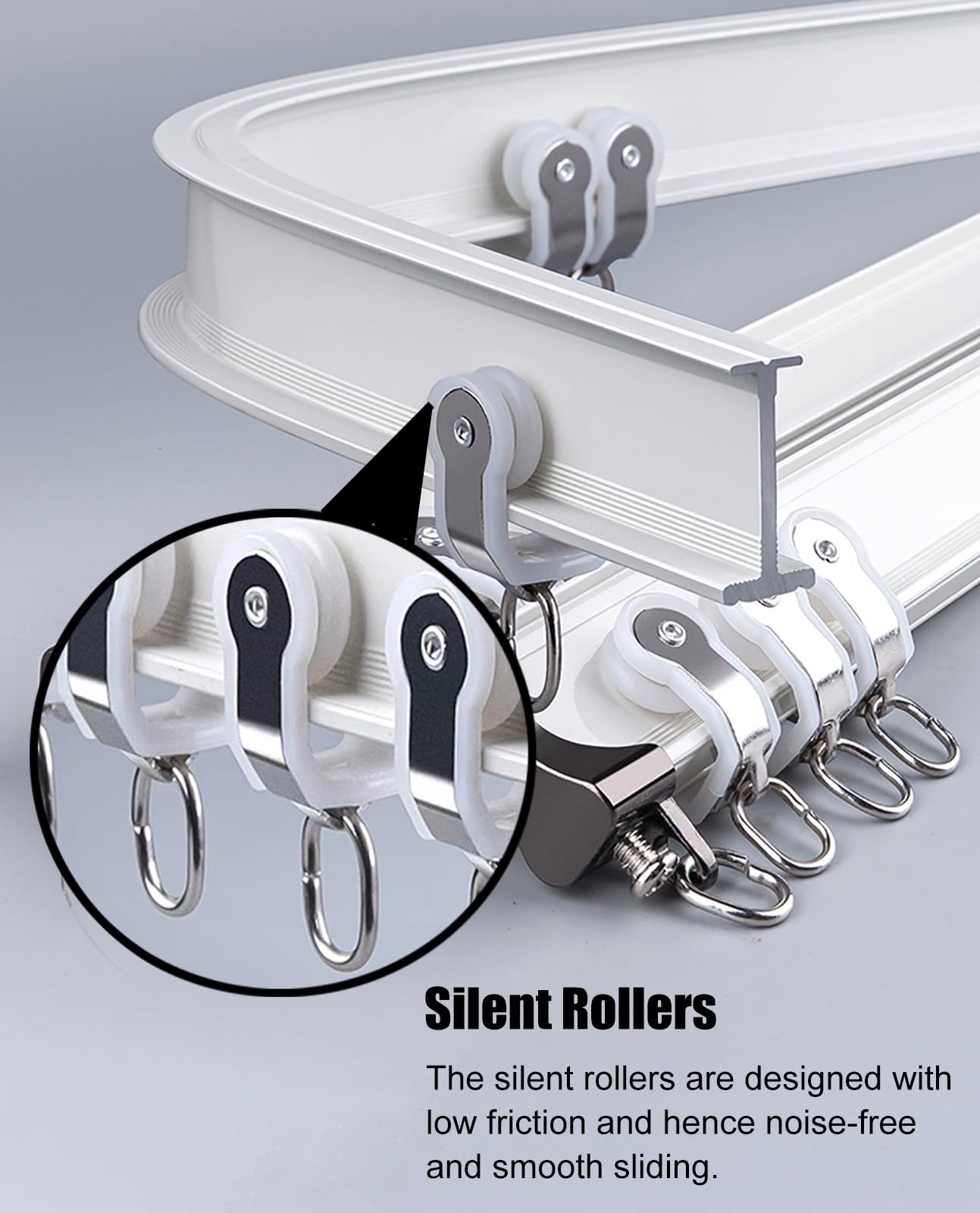 【サイレントローラー】: 非常に滑らかな手触りで、引っかかることがなく、簡単に開閉できます。 ランナーは低摩擦で設計されているため、ノイズがなくスムーズにスライドします。このトラックはカーテンが光を最大限に遮断するのに役立ちます。