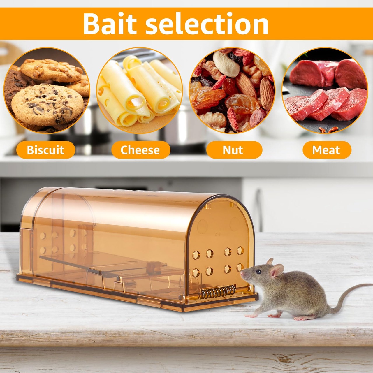 【ネズミ捕り使用方法】老鼠が隙間から逃げ出さないように注意してください!誘引剤を設置し、蓋を開けるだけで簡単に使用できます。誘引剤を誘引剤ボックスに入れ、ペダルとドアを装着し、よく出没する場所に置いてください。