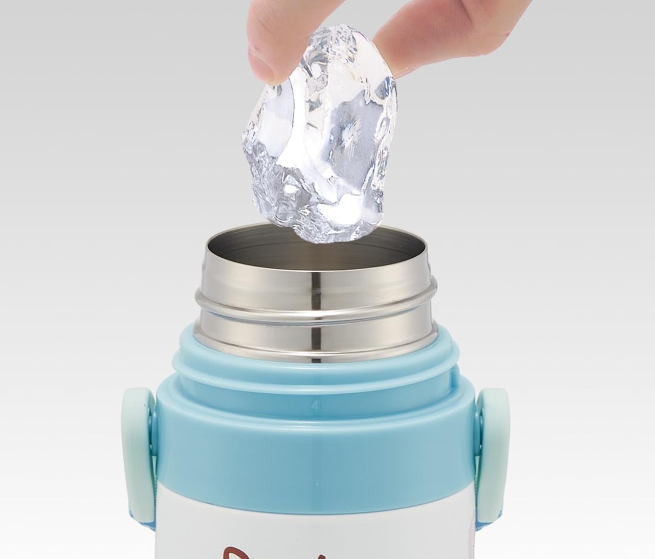 不意にフタが開くのを防ぐロック機能付き、真空二重構造で保冷力・保温力UP