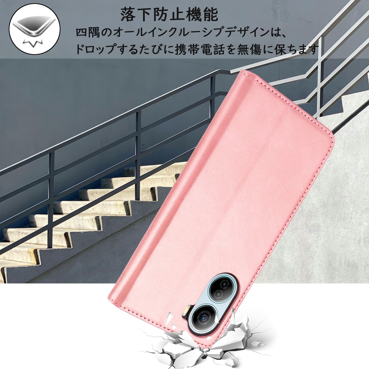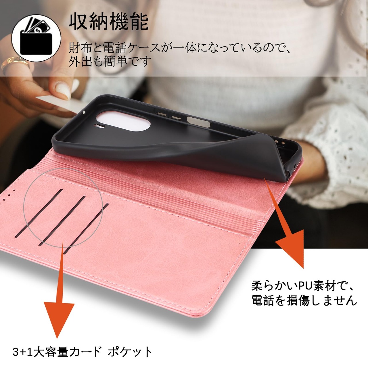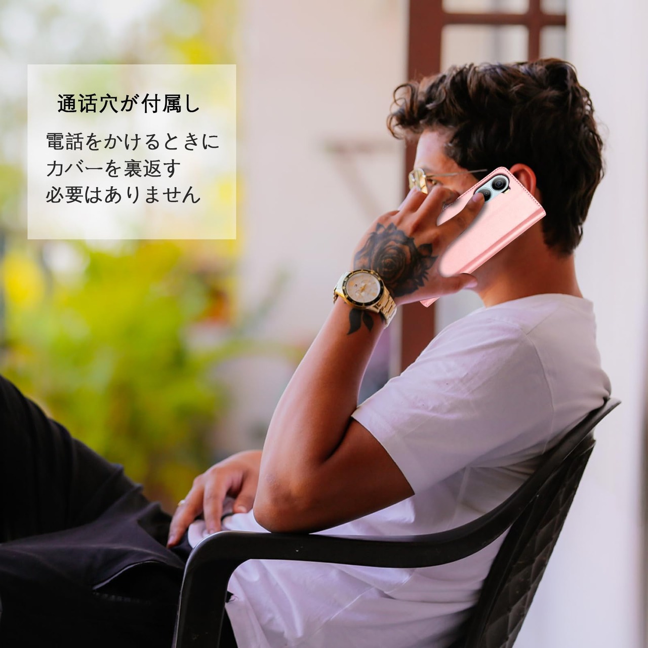 【Hamany】 libero 5g iv ケース 手帳型 ZTE libero5givスマホケース リベロ5g4 A302ZT 携帯ケース 耐衝撃 全面保護 耐摩擦 内蔵マグネット スタンド機能 ストラップホール付き-ファッションローズゴールド