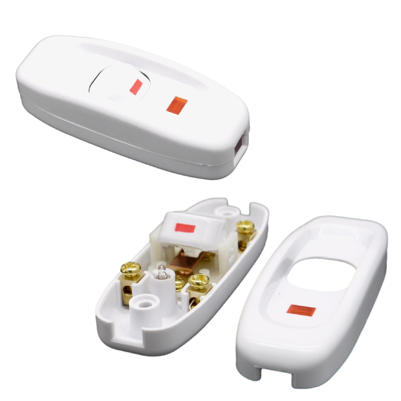 Sugarello 中間スイッチ インライン ランプ付き ON/OFF スイッチ 照明器具 換気扇 手元スイッチ 増設用 シーソースイッチ AC 250V 10A 片切スイッチ ホワイト 2個セット
