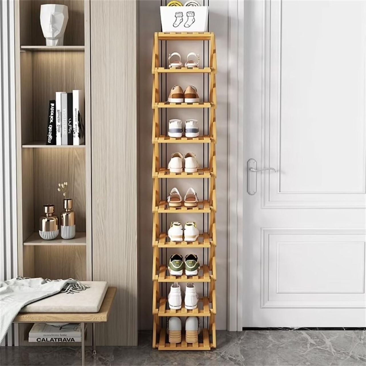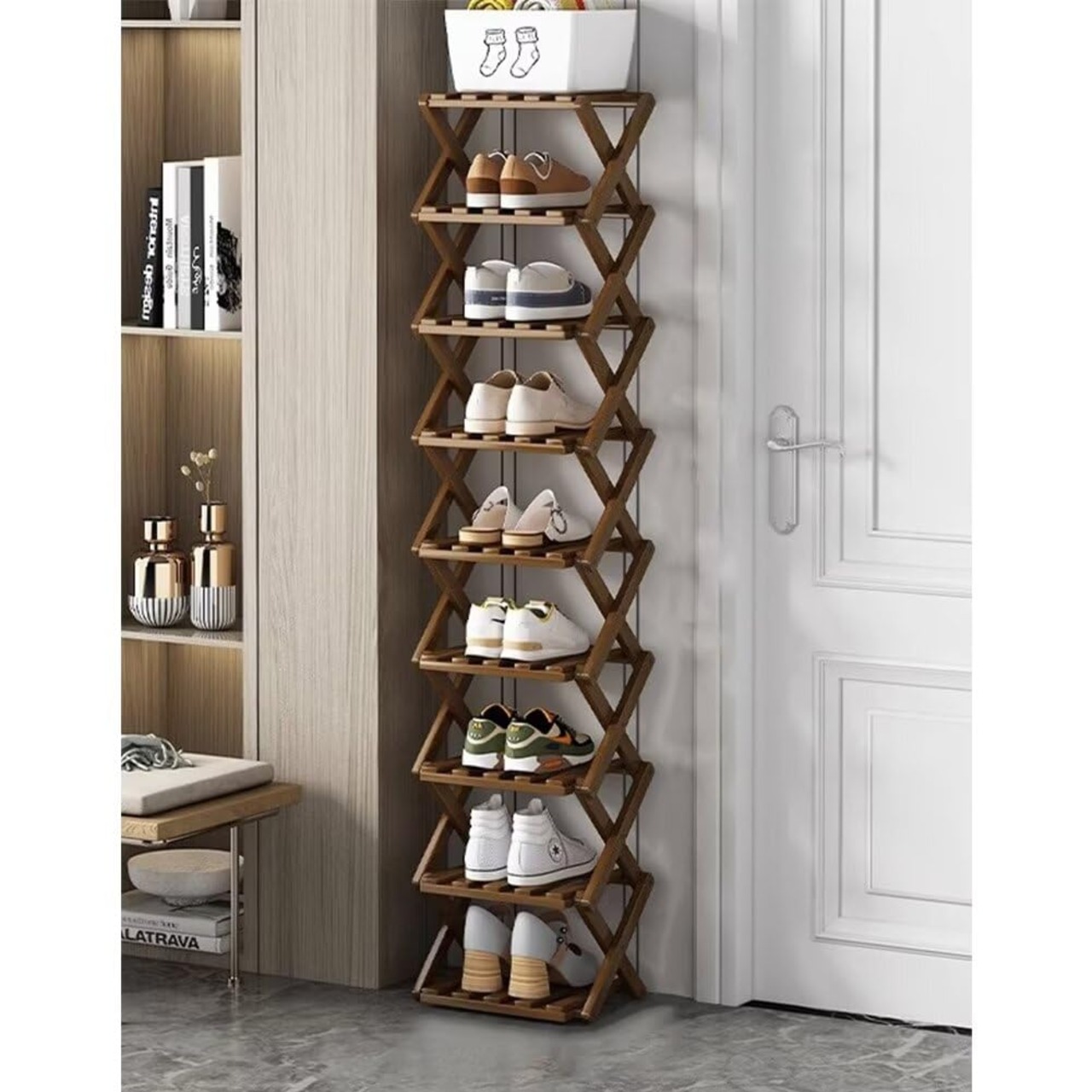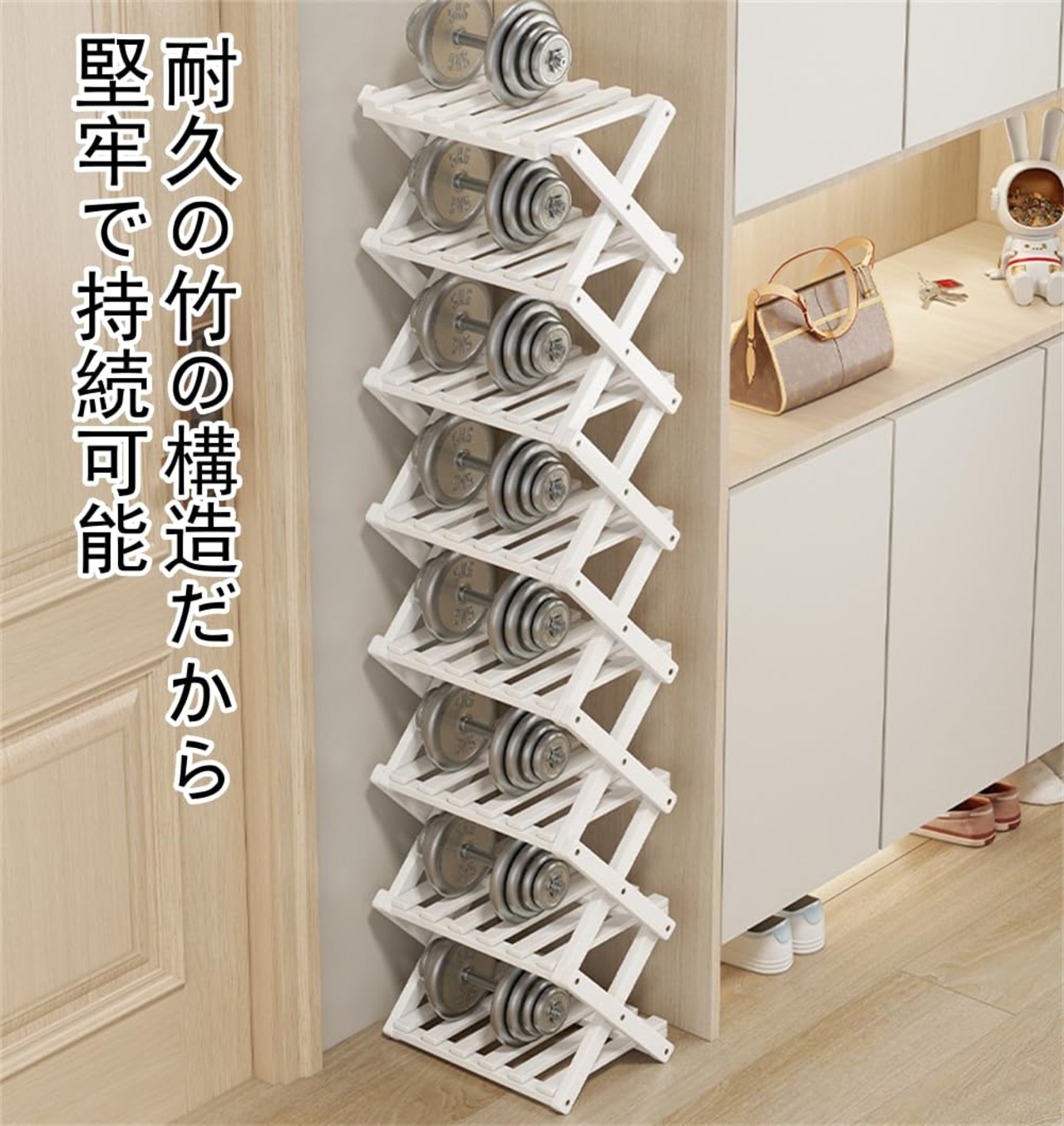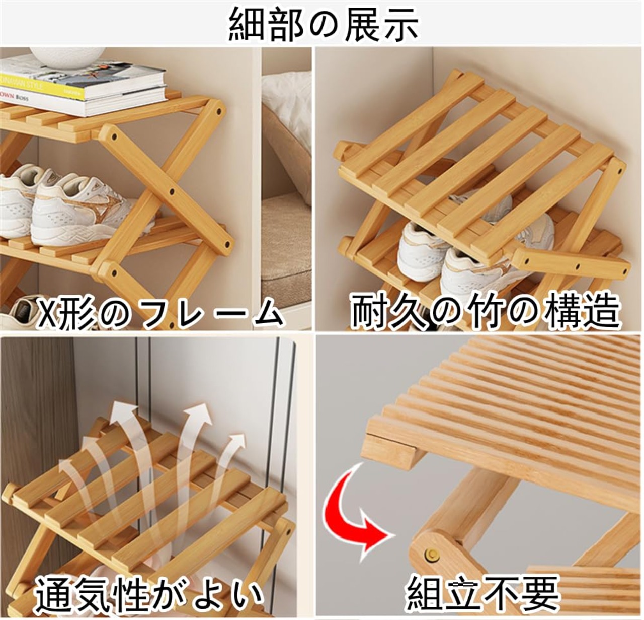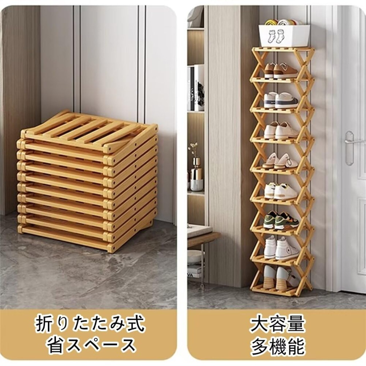 シューズラック 玄関 スリム 靴棚 折り畳み 靴箱 靴収納 下駄箱 靴入れ 省スペース 組立不要 竹製 コンパクト おしゃれ 便利 すき間 幅26cm 屋内 屋外 多用途