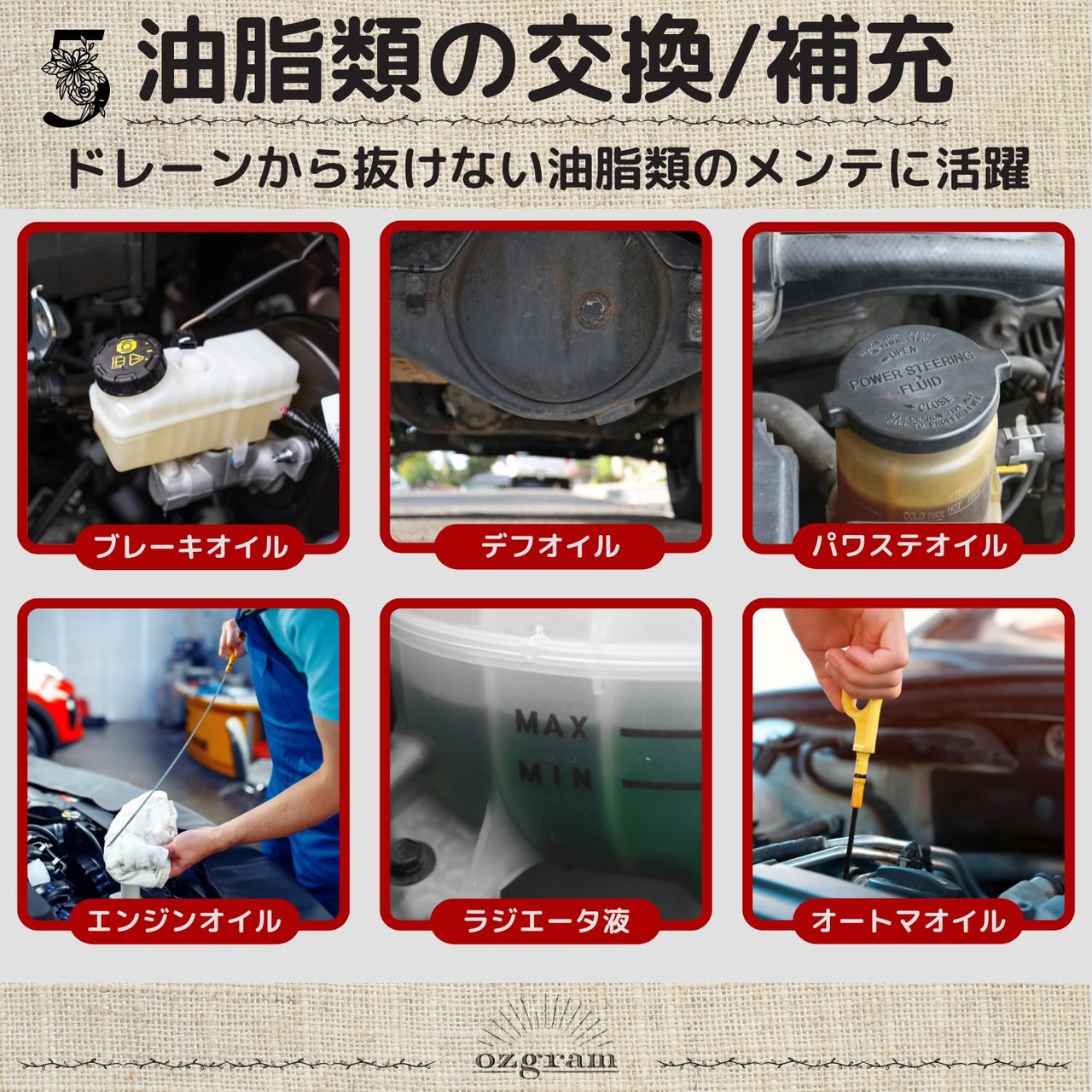 【油脂類の交換/補充作業に】ドレーンから抜けない油脂類のメンテナンス作業に活躍します
