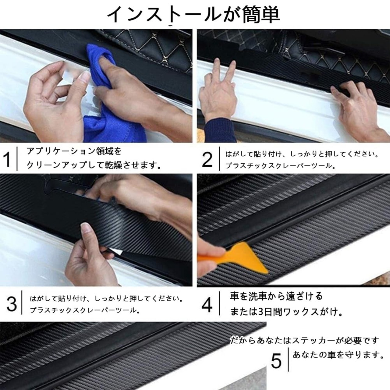 特徴:<br> 1. 車のドア シル ステッカーはセルフ式です。接着剤。あります<br> 2.縮めたり、折り畳んだりしても型崩れしません<br> 3.防水・防滑・防塵です<br> 衝撃を吸収し、傷を防ぎます。既存の傷をカバーし、あなたの車に別のスタイルを与えます。外側のドアシルプレートのエッジを効果的に保護し、摩擦による傷を防ぎます。インストールは非常に簡単です。裏に接着剤が付いています。<br> 取り付け:<br> 1. 製品を取り付ける表面が清潔で乾燥しており、ほこり、グリース、ワックスがないことを確認してください。<br> 2.製品の正確な位置を決定します<br> 3.接着剤から保護フィルムをはがし、慎重に位置合わせし、しっかりと押して適切な接着を確保します<br> 4.取り付け 製品を動かしたり、車を洗ったりしないでください24時間