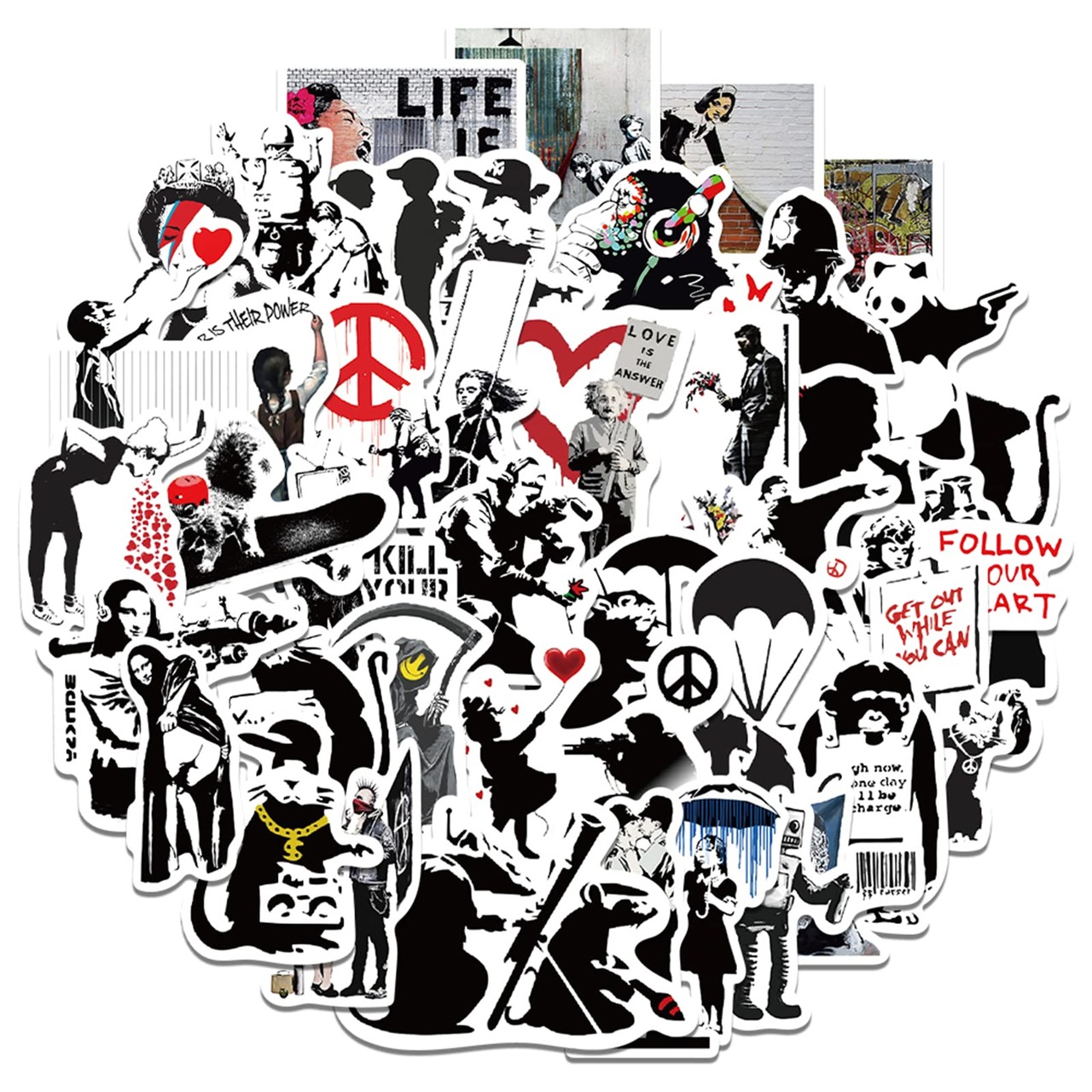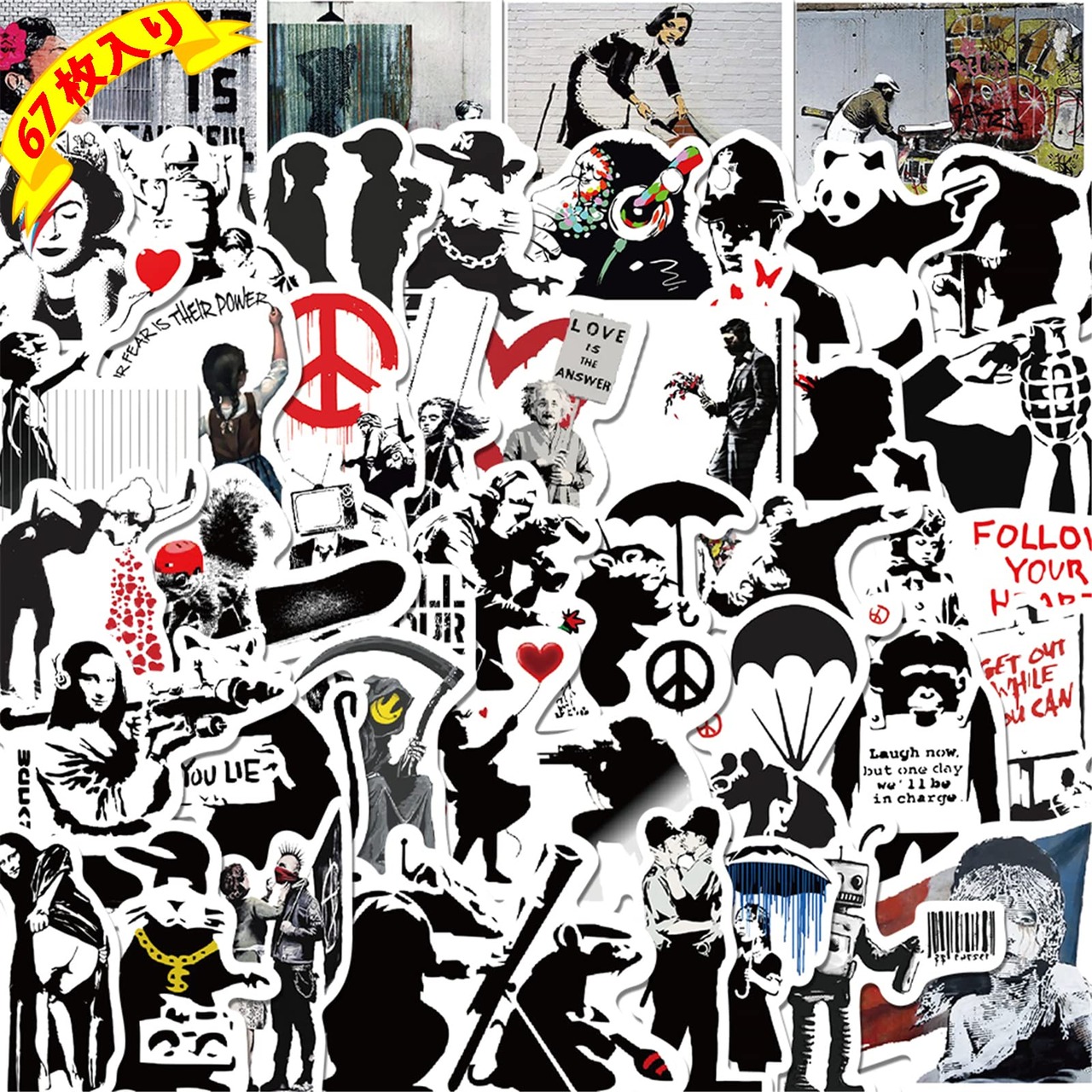 67枚セット ステッカー シール バンクシー 防水 デカール おしゃれ かっこいい 人気 ノートパソコン パソコン スノボ スケートボード 荷物 スーツケース ギター 水筒 スマホケース スケボー カー 自転車 バイク ヘルメットなど用 [並行輸入品]