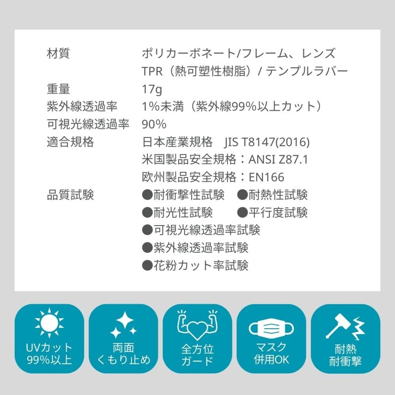 適合規格品( 日本産業規格 JIS T8147 米国製品安全規格 ANSI Z87.1 欧州製品安全規格 EN166 )