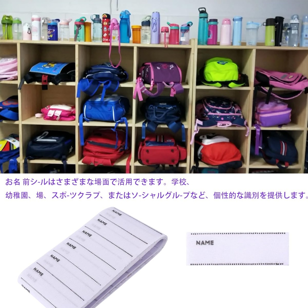 [いろいろなものに貼って使える]お子さんの洋服や体操服、靴下、タオル、体操袋など、いろいろなものに貼ってお使いいただくことができます。幼稚園や保育園での洋服の取り違えなどを防ぎたい時などにぜひ活用してみてください。