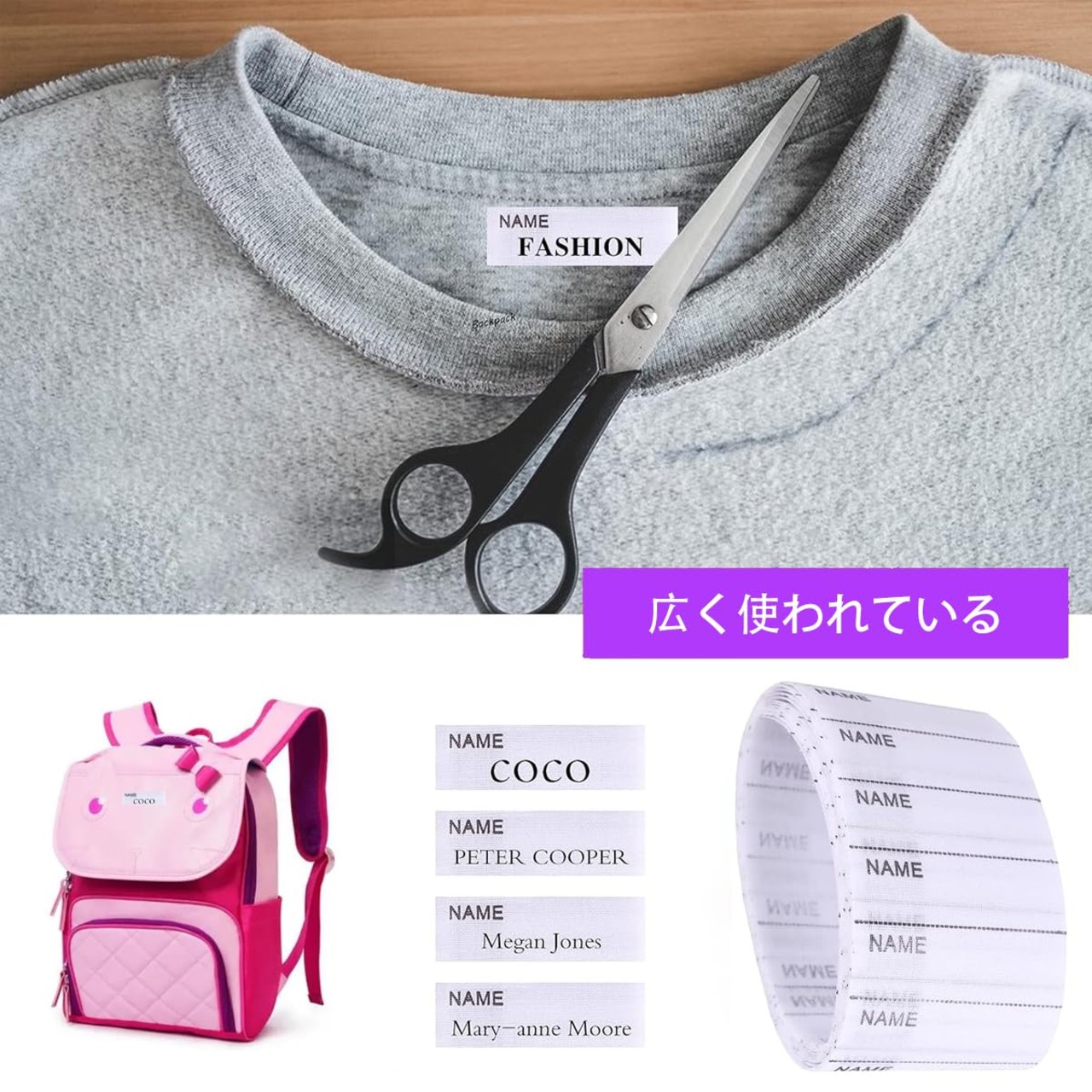 [使用方法]名前布テープは使用する方法は2つあります。 1つ目はドライアイロンを使って約15秒アイロンをかけ、 裏面に接着剤があります。2つ目は、縫製ツールのある任意の位置にラベルを縫うことです。 名前布テープは、希望のサイズに自由にカットできます。これは非常にシンプルで、使用するのに便利です。