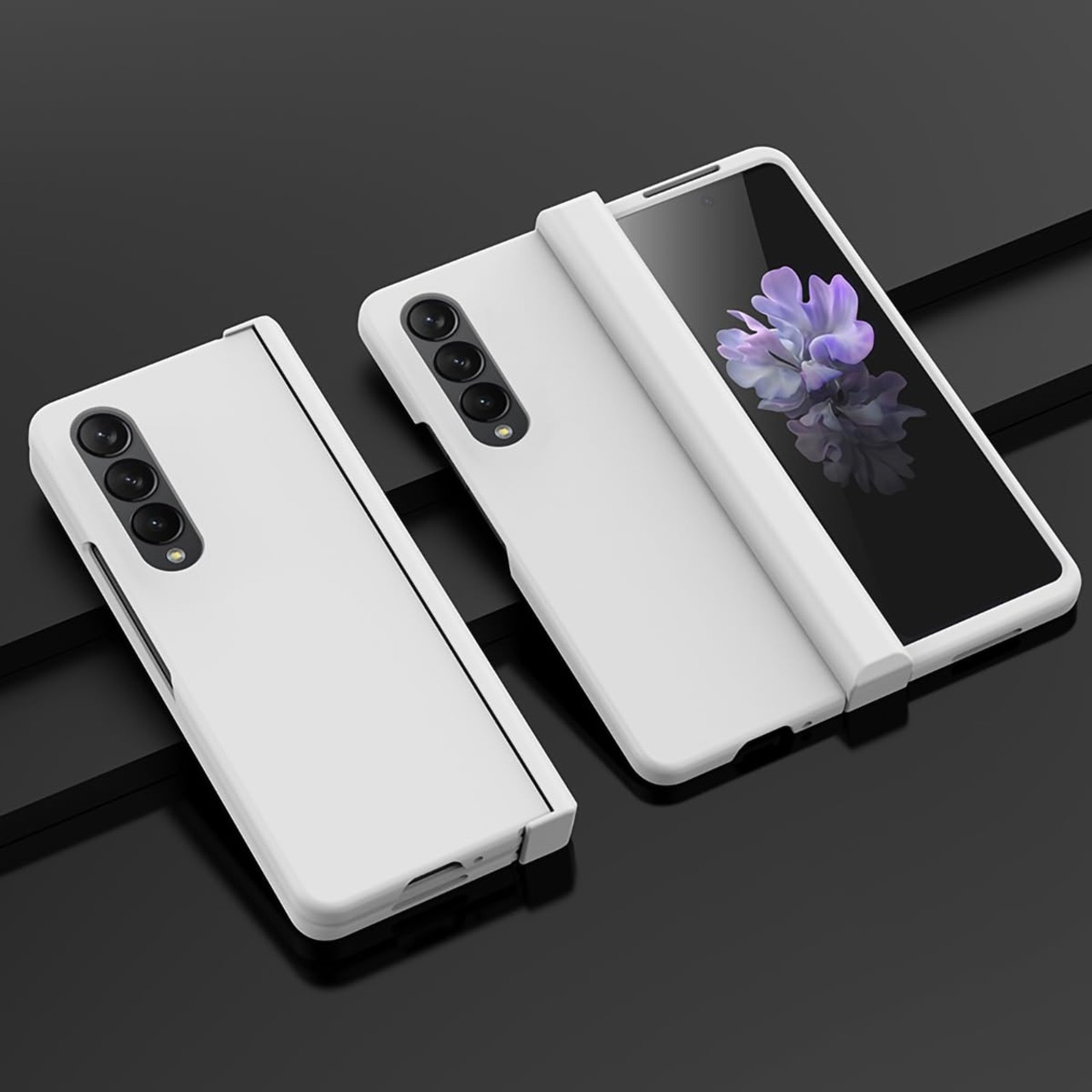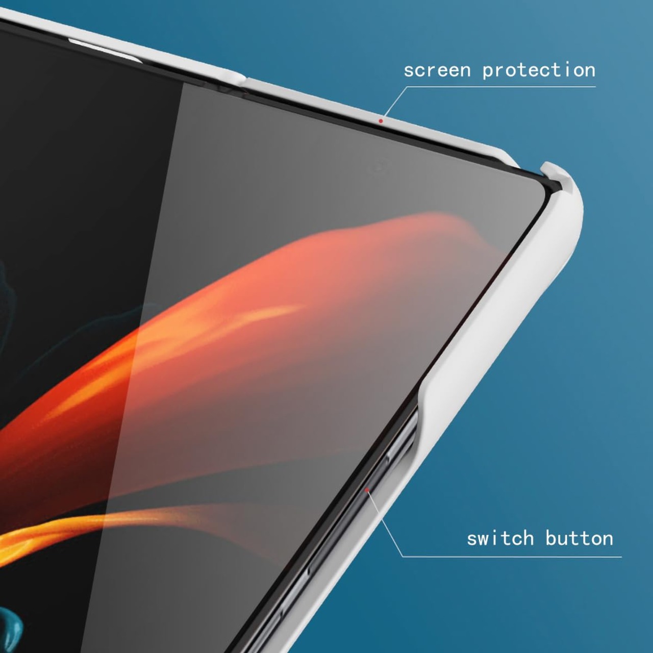 Galaxy Z Fold4 /W23ケース,手帳型 折り畳 みおしゃれ 超軽量 薄型PC 人気 つや消しの表面 ヒンジとレンズ保護 カバー ストラップ ワイヤレス充電サポート プラスチック かわいい フリップ 衝撃吸収 財布型 面白い スタンド フリップ 磁気防止取り外し ポケット ハイブリッド メイクアップ - 白