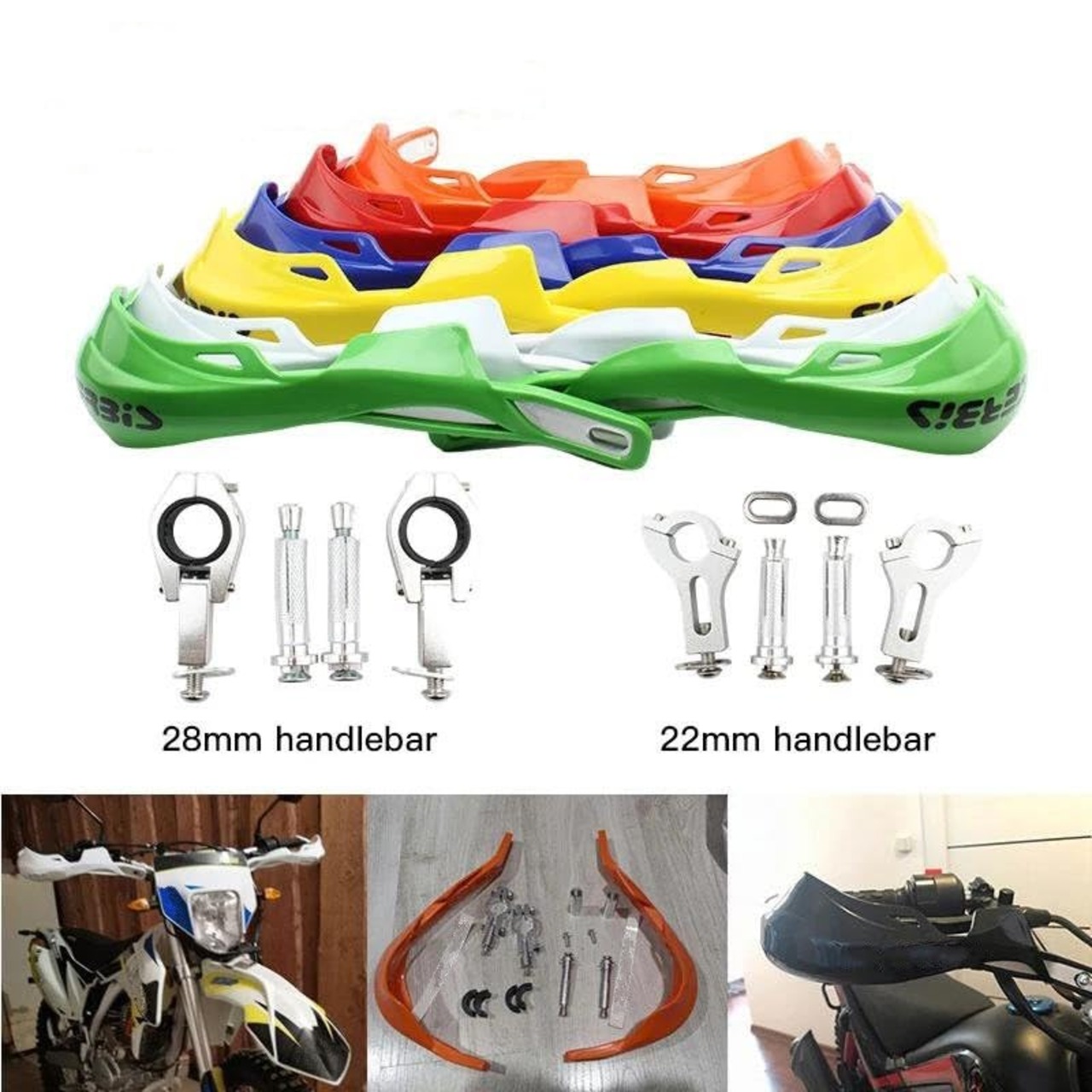 特徴:<br/><br/>運転中に効率的に手を保護<br/><br/>藪、石、泥、冷たい風から手を守ります。<br/><br/>ブレーキケーブル制御やその他の機器を収納するのに十分なスペースを確保<br/><br/>仕様:<br/><br/>色:画像として<br/><br/>材質:PPプラスチック<br/><br/>装備品:<br/><br/>すべてのダートバイク、エンデューロに適合するユニバーサル取り付けキット<br/><br/>7/8インチ 22mmおよび1 1/8インチ 28mmのすべてのハンドルバーに適合します。<br/><br/>パッケージ内容:<br/><br/>ハンドガードとフィッティングキットのセット<br/>オートバイのハンドガードは、茂みの岩、泥、冷たい風から手を保護し、事故の際にオートバイを保護するために強化されています。<br/>オートバイのハンドガードの空力設計は、自転車の安定性に対する乱気流の悪影響を軽減し、気流の軌道を安定させます。