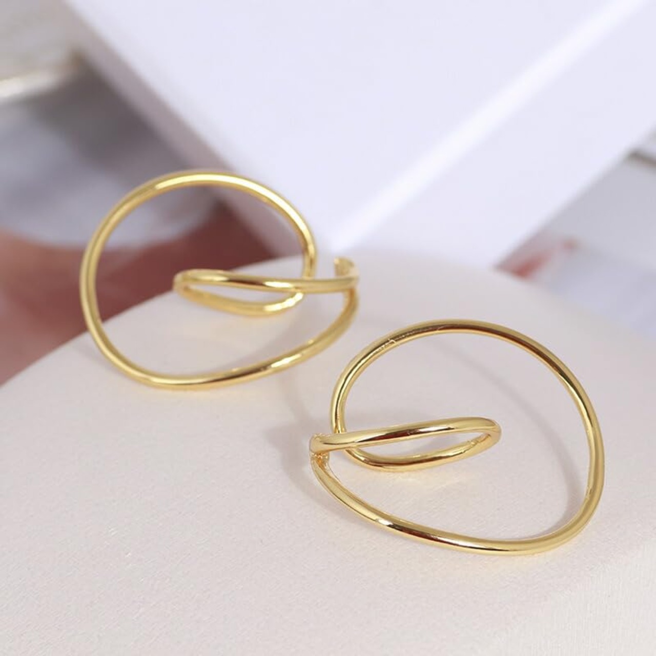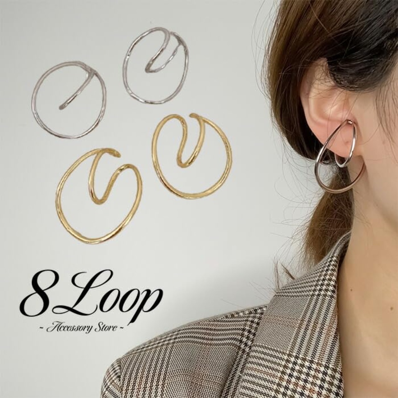 【 8loop 】イヤーカフ 大ぶり 両耳 レディース 大きめ イヤーカフ 2個セット 落ちない 変形デザイン 立体的 シンプル かっこいい 大人 女性 (ゴールド)