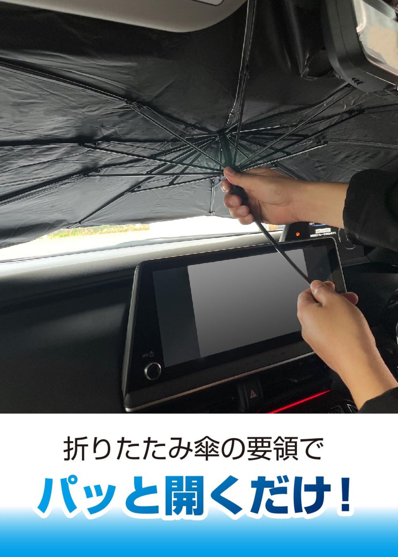 サッと広げてラクラク装着!パラソル型サンシェード!