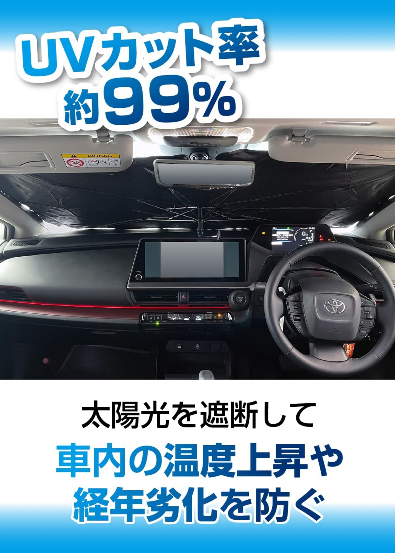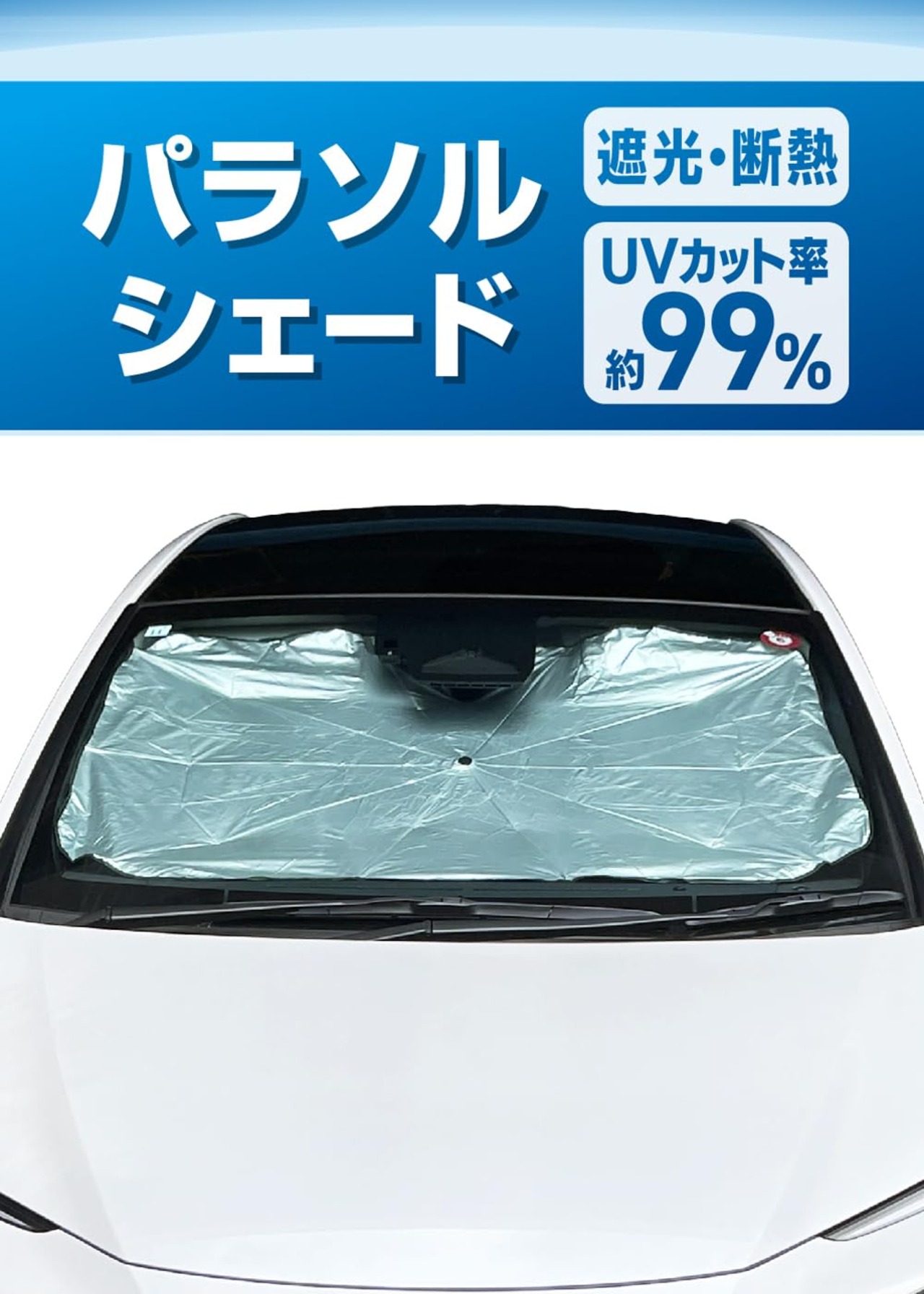 メルテック(meltec) サンシェード 傘型 車用パラソルシェード Lサイズ 断熱 遮光 遮熱 UVカット (骨組み:約135×75cm シェード生地:約144×76cm) PS-21