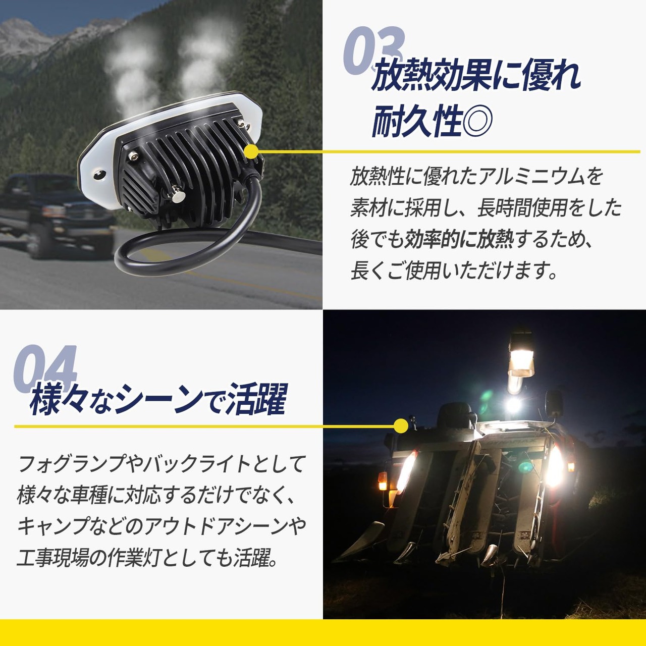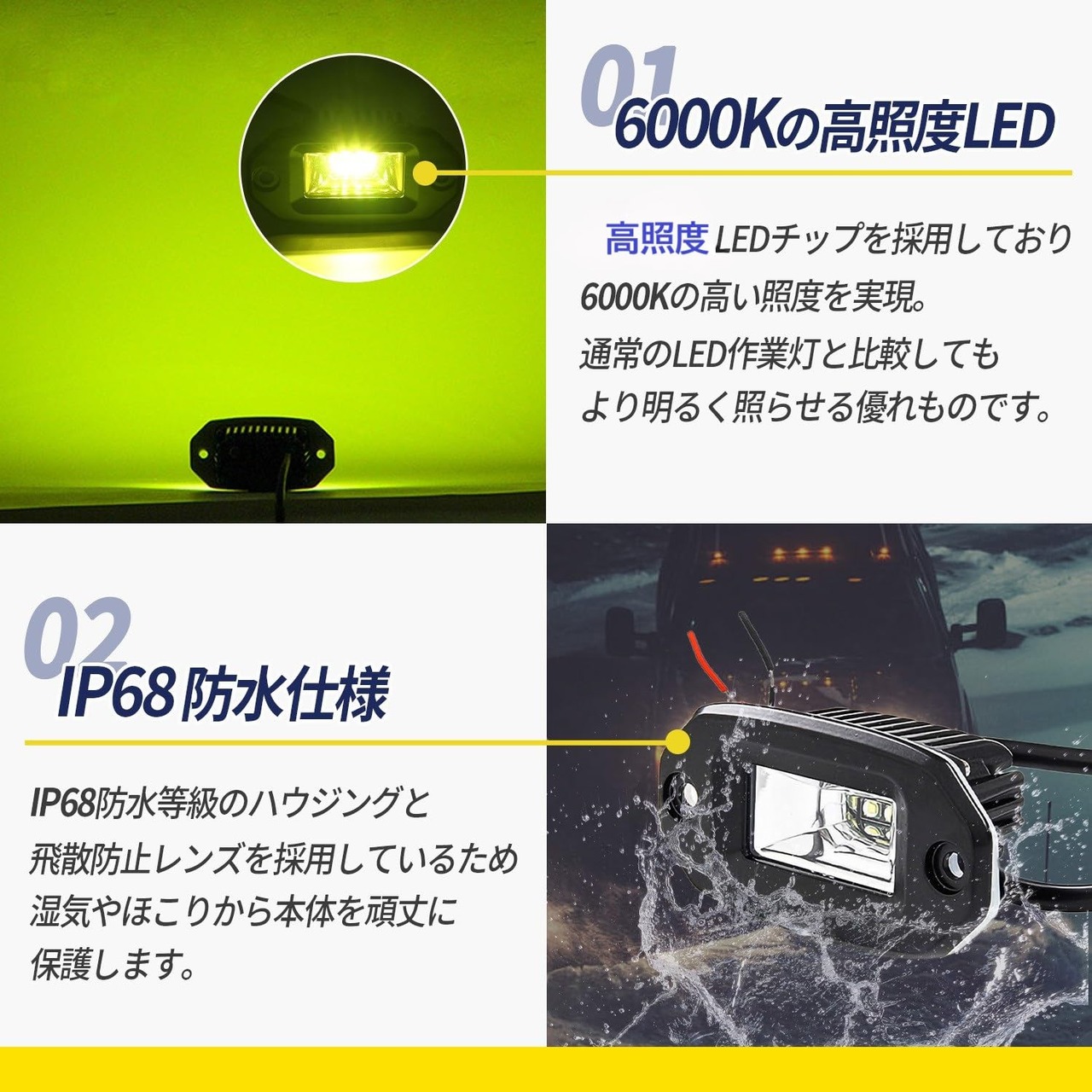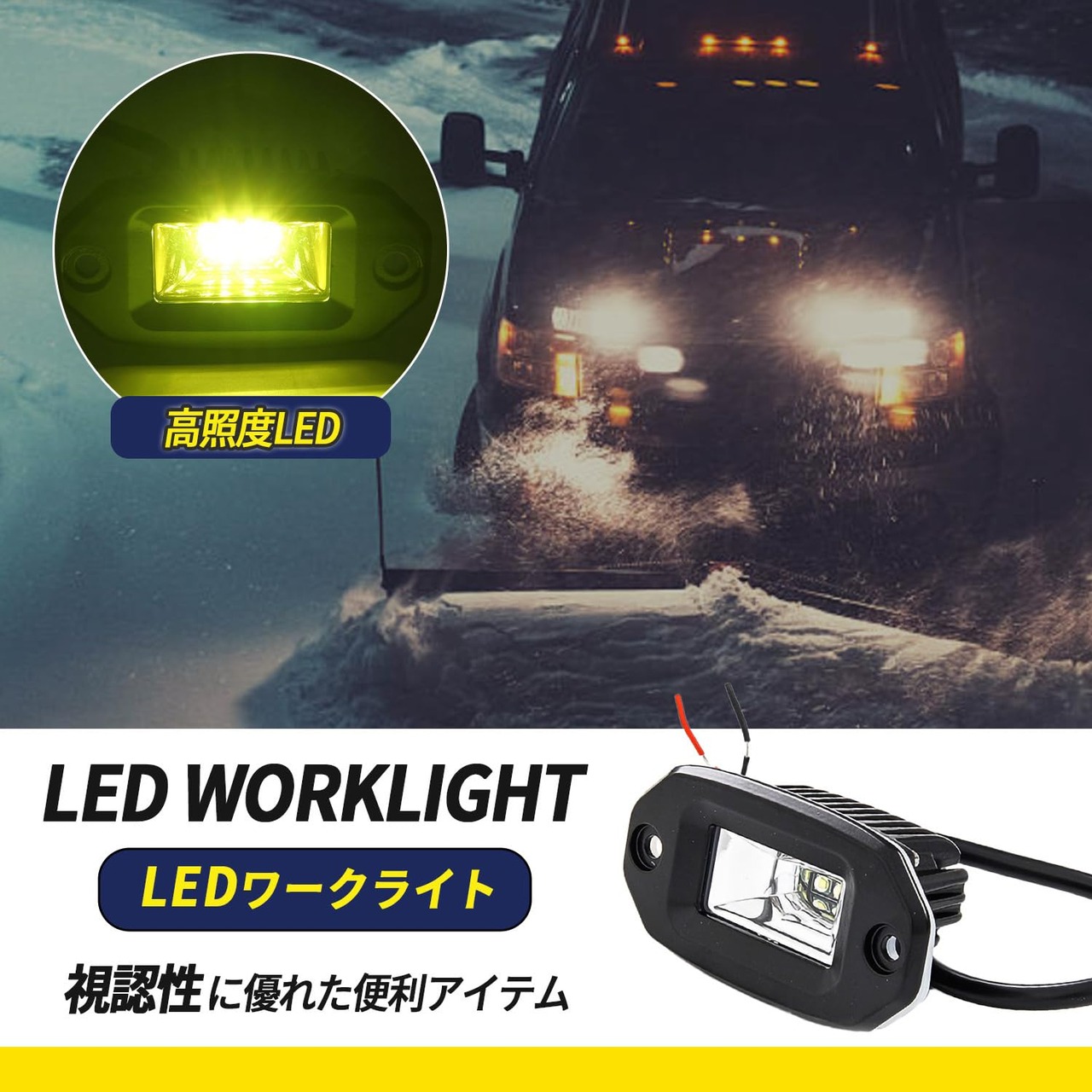 azumafy 埋め込み LED 作業灯 ワークライト 後付け 汎用 12v 24v 20w 作業用 広角 防水 防塵 バックランプ 重機 トラック イエロー